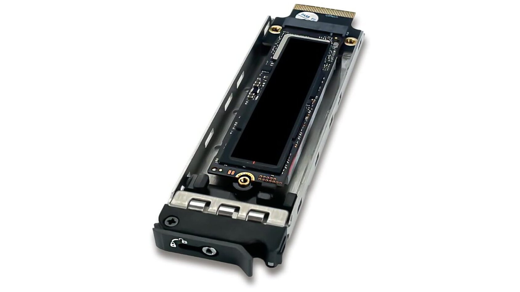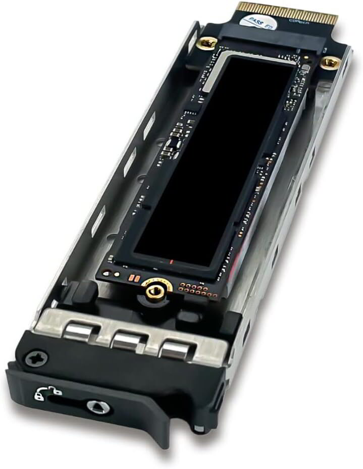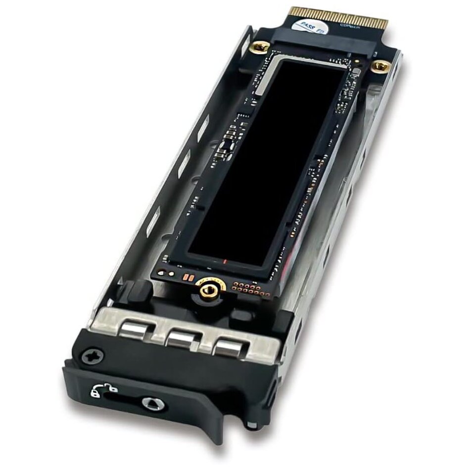 A tálca kialakítása gondoskodik arról, hogy a nagy sebességű NVMe SSD fizikai és elektromos szempontból is védve legyen.
