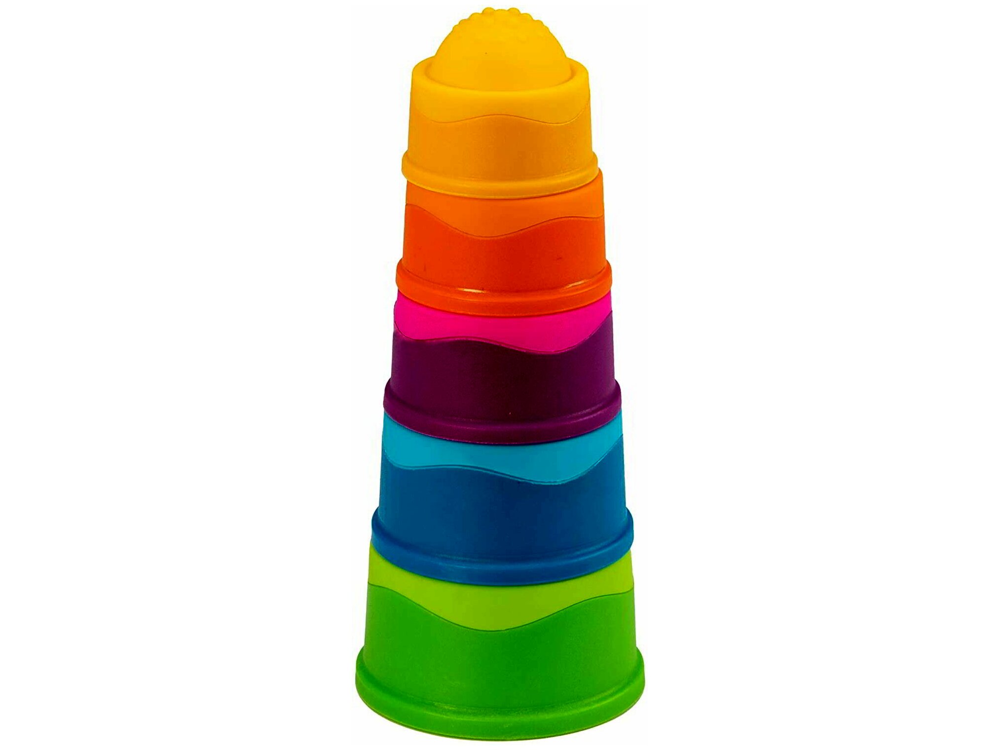Minden pohár tetején egy egyedi textúrájú dombormintával ellátott, puha szilikonbuborék található. A kis ujjak imádni fogják megérinteni, nyomkodni és újra és újra kipukkasztani őket. Eközben az egyedülálló egymásra rakhatósága leköti a kíváncsi és növekvő elméket, miközben több órányi szórakozást nyújt, amit a szülők a Dimpl játékok egész sorától elvárnak.