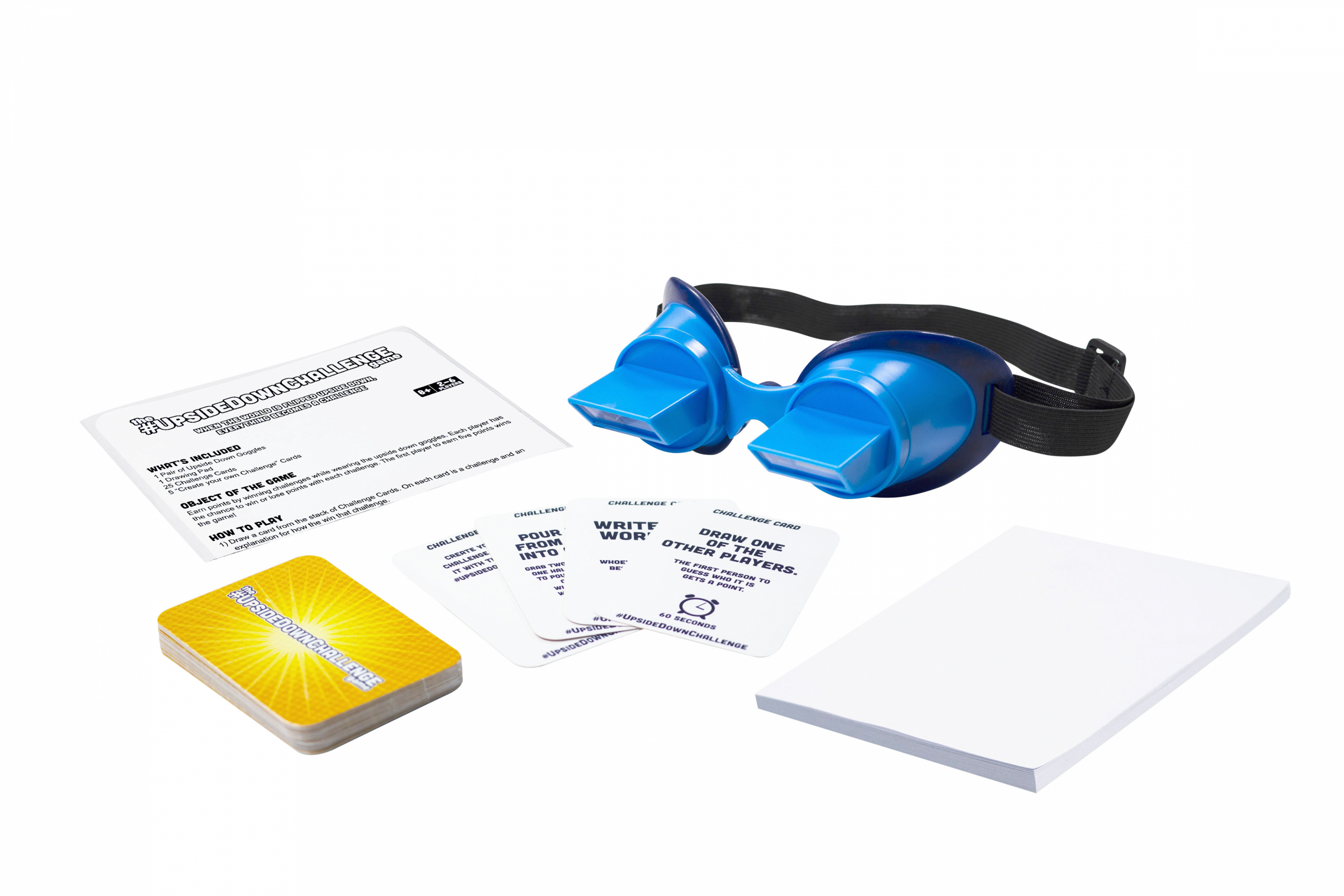 Amikor a világ fejjel lefelé fordul, minden kihívássá válik! Órákon át tartó nevetés és szórakozás az egész családnak a Fejjel Lefelé Kihívás társasjátékkal. Versenyezzetek a vicces feladatok megoldásával, mint pl. a neved leírása, víz öntése a pohárból, úgy, hogy a szemüveget felvéve mindent fordítva láttok majd!