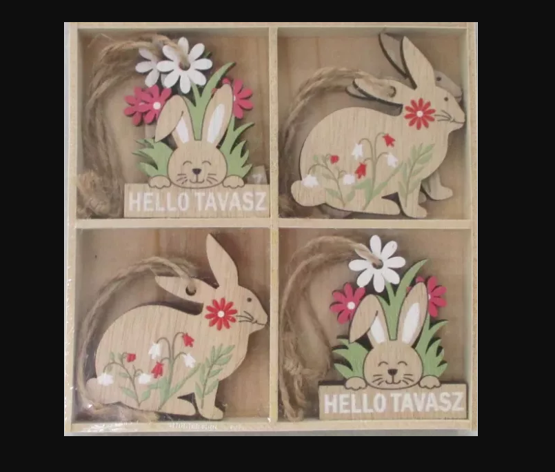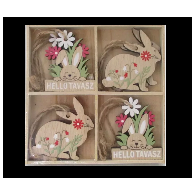 • Készlet tartalma: 8 db fa nyuszis dísz