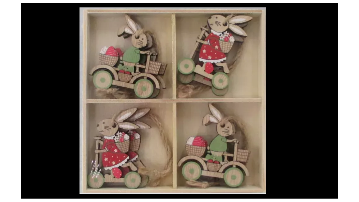 A 6 cm-es fa figurák könnyedén felakaszthatók – kiválóan mutatnak húsvéti ágakon, ajtódíszen, ablakban, függönykarnison, falidíszen vagy akár kreatív DIY koszorúkon is. Kompakt méretüknek köszönhetően kisebb terekbe, gyerekszobába, előszobába is ideálisak, mégis jól látható, vidám díszítőelemek.