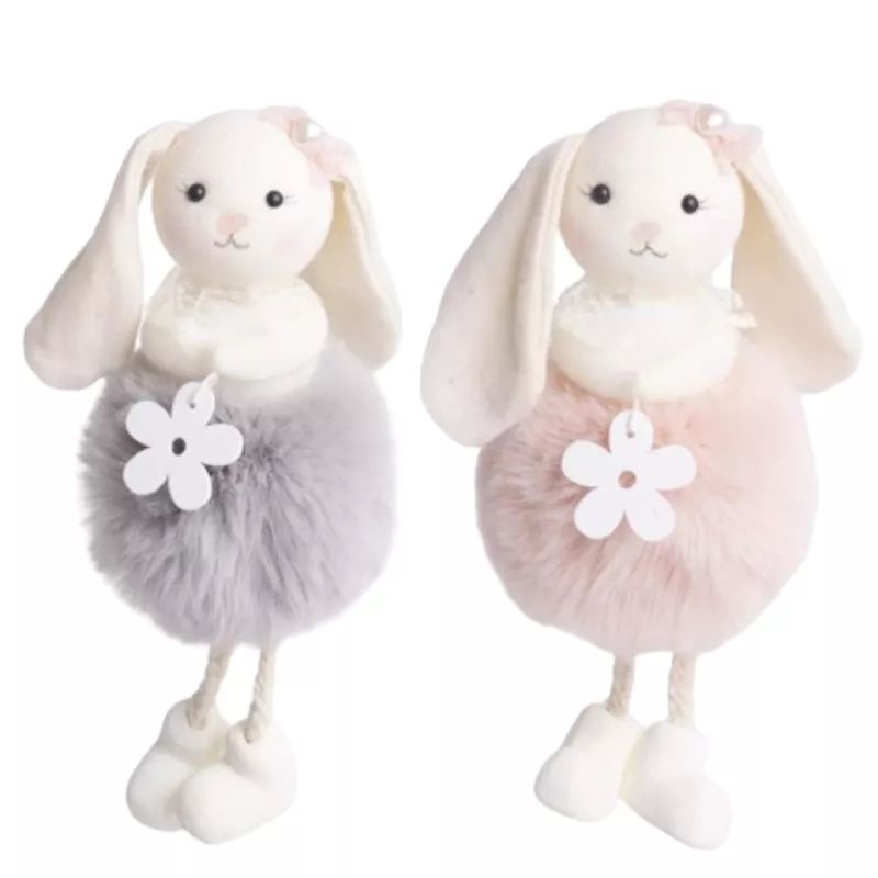 Ezzel a cuki nyuszi dísszel feldobható a nappali, a gyerekszoba vagy a lakás bármelyik helyisége. Sőt, akár a húsvéti kosárkában is nagyon jól mutat, vagy saját készítésű húsvéti dísz kiegészítő eleme is lehet. A praktikus akasztónak köszönhetően könnyen felfüggeszthető. A nyuszi teste puha pompon, kezében virágot tart, fejét masni díszíti.