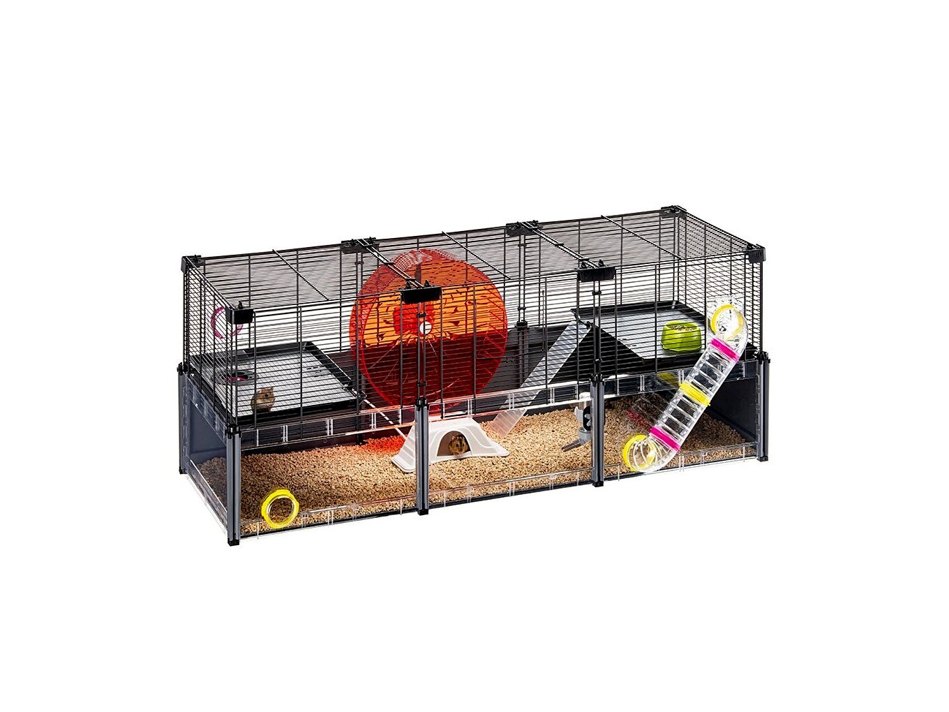 - A ketrec különféle kiegészítőkkel is felszerelhető, mint például szaladgáló kerék, etetőtálak és búvóhelyek.