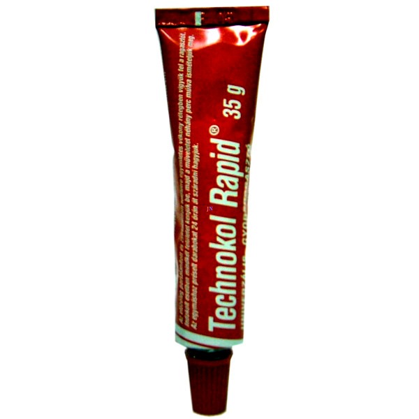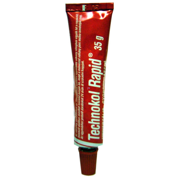 Folyékony, univerzális piros tubusos Technokol Rapid ragasztó, 35 g-os kiszerelésben. A ragasztóval papírt, kartont, bőrt, textilt, fát, műanyagot, üveget és porcelánt, valamint ezek kombinációját lehet ragasztani. A ragasztandó felületeket előzetesen portalanítani is zsírtalanítani kell, a ragasztós felületeket a tökéletes kötés érdekében 24 órán keresztül tanácsos egymáshoz préselve tartani.