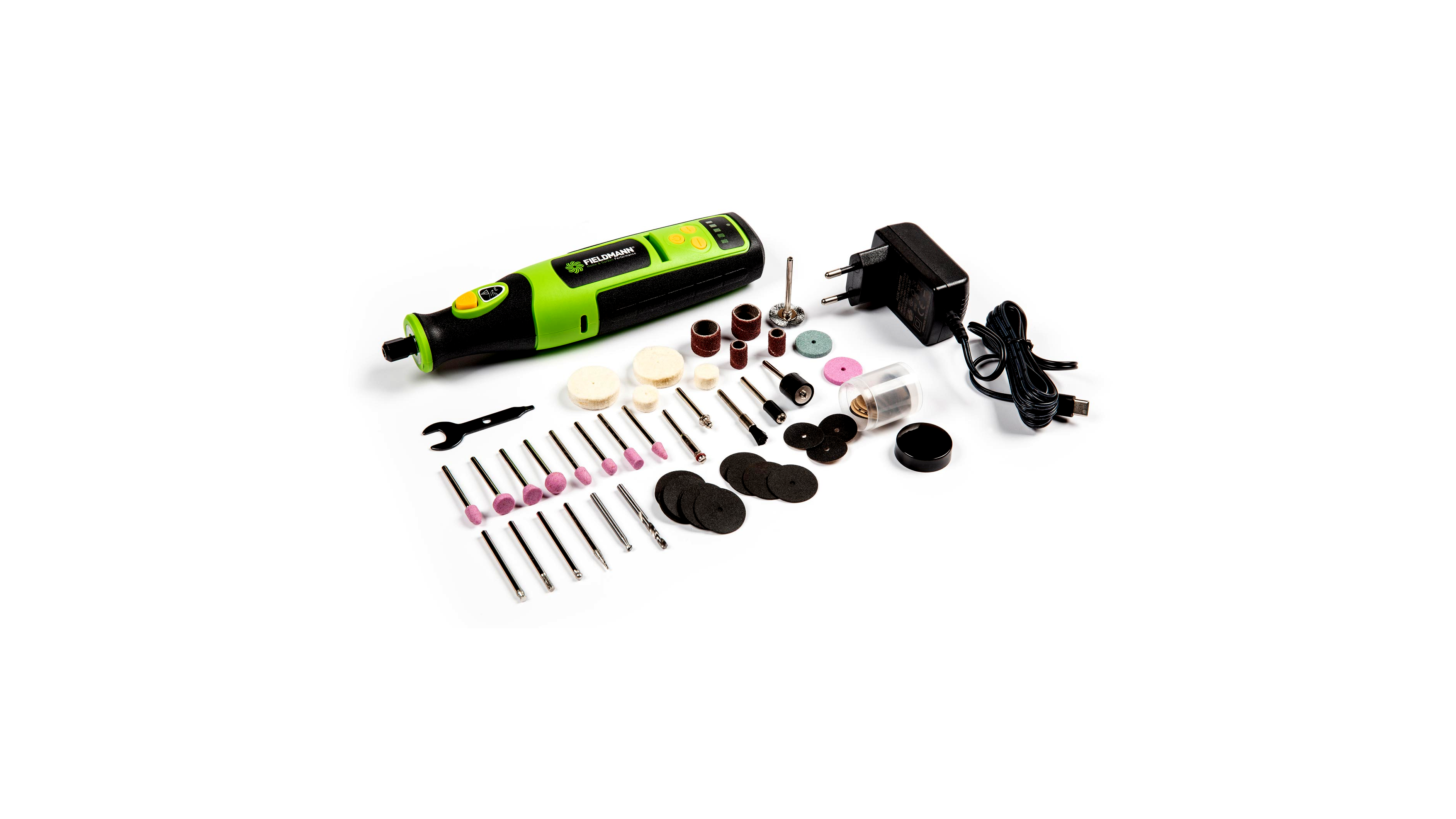 A jól bevált Fieldmann márka jól kidolgozott modellcsiszolója sokoldalú univerzális eszköz otthoni barkácsolók, kisiparosok és hobbirajongók számára. Ez egy mini direkt csiszoló sebességszabályozással. A Li-Ion 7,2 V / 1,3 Ah akkumulátor elegendő teljesítményről gondoskodik. A fordulatszám 5000 - 25000 fordulat/perc tartományban szabályozható. Puha és kemény anyagok feldolgozására egyaránt alkalmas. Tökéletesen tart és könnyen és gyorsan cserélheted benne a munkatartozékokat. A klasszikus csiszológépekhez képest nem kell kábelt cipelni, és még olyan területen is lehet dolgozni, ahol nincs áram. 70 db kiegészítővel. Mindezt egy ergonomikus fogantyú egészíti ki, puha markolattal.