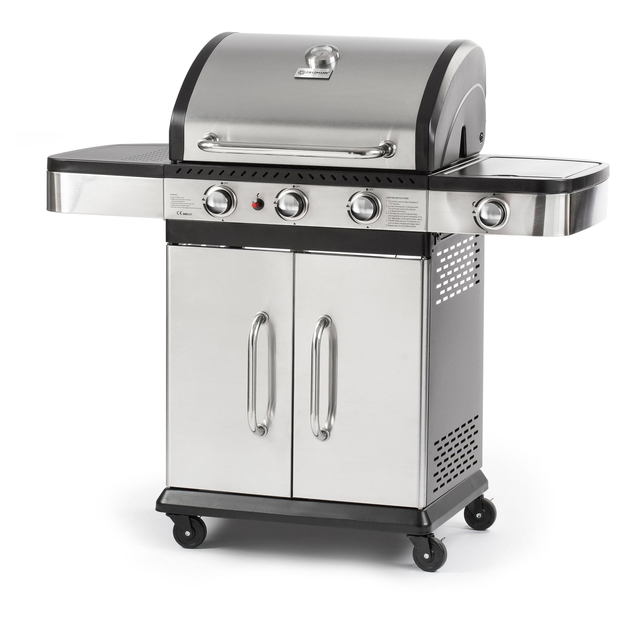 Ismerje meg a Fieldmann FZG 3011 gázgrillt - az ideális kiegészítő minden kerti sütés-főzés kedvelőjének! Ez a kiváló minőségű gázgrillsütő mindazt nyújtja, amire szüksége van ahhoz, hogy kertjében vagy teraszán kényelmesen és stílusosan élvezhesse a sütés és grillezés élményét. A három rozsdamentes acél égőfej, kiegészítve az oldalsó gázégővel, egyedülálló teljesítményt biztosítanak. Ezek egymástól függetlenül használhatók, így változatos hőmérsékleteket állíthat be az ételei elkészítése során. Az egyszerű indítást a beépített gyújtási rendszer biztosítja, míg a beépített hőmérő lehetővé teszi, hogy mindig ellenőrizze a sütőtér hőmérsékletét. A grillsütő egy oldalára praktikus munkalapot is terveztünk, így kényelmesen előkészítheti az ételeket vagy tálalhatja azokat. A kerekeinek köszönhetően könnyen mozgatható, így bárhová elhelyezheti a kertben vagy teraszán. Az energiaforrást az 5 kg vagy 10 kg gázpalackok biztosíthatnak, amelyeket könnyen csatlakoztathat a mellékelt csatlakozó tömlővel. A grillsütő méretei (122 x 57 x 112 cm) és a tágas grill felület (60 x 42 cm) ideálisak mindennemű sütéshez és grillezéshez. A rozsdamentes acél fogantyúk és kezelőpanel nemcsak modern megjelenést kölcsönöznek, hanem ellenállnak az időjárási viszontagságoknak is. A mozgatást segítő kerekek segítségével könnyen szállíthatja és pozícionálhatja a grillsütőt a kertjében. Élvezze a sütés és grillezés örömeit a Fieldmann FZG 3011 kiváló minőségű, stílusos gázgrillsütővel!