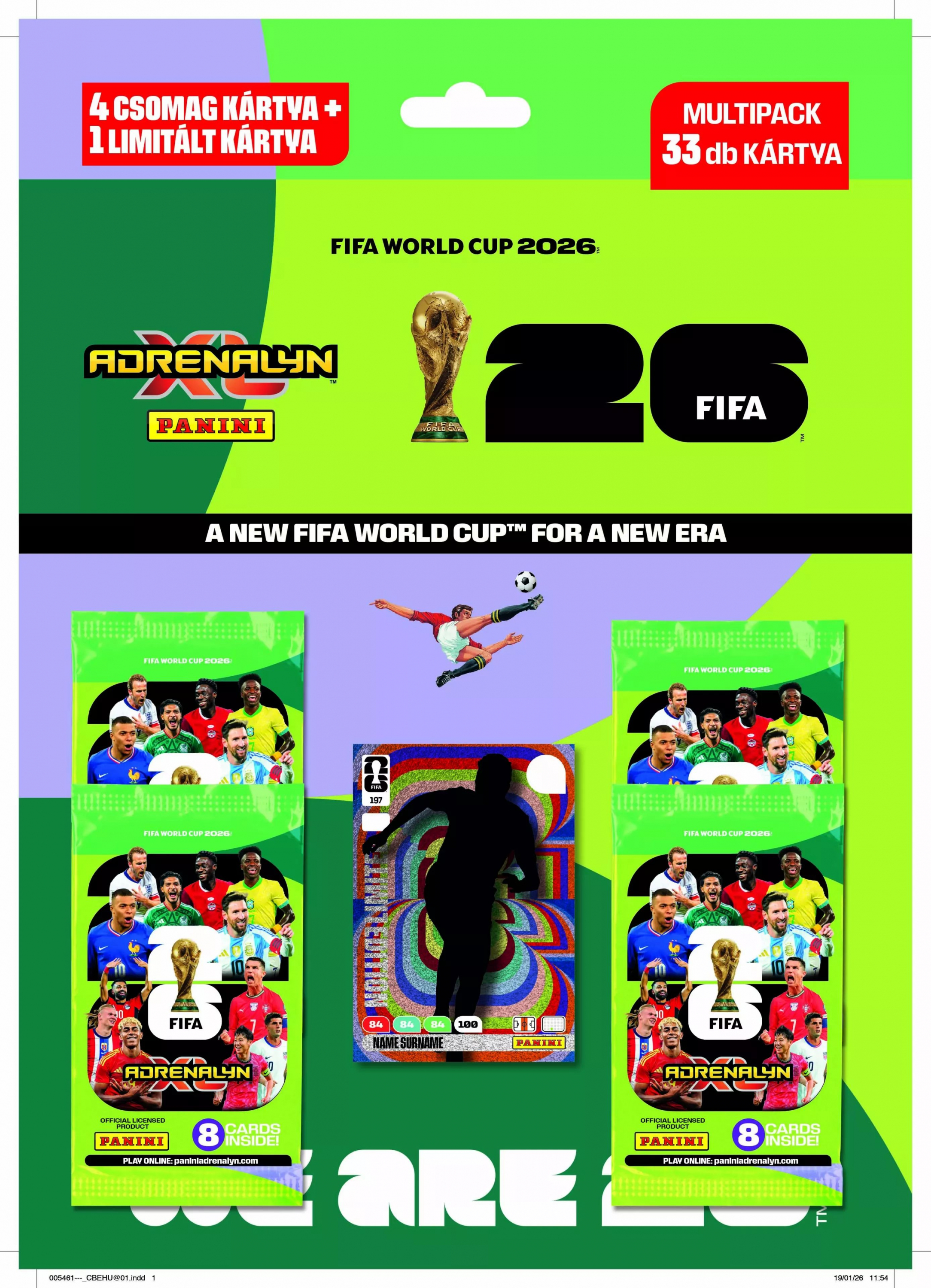 A hivatalos tematikájú kártyák a 2026-os világbajnokság résztvevőit, sztárjátékosait és kulcspillanatait hozzák közelebb, igényes grafikai kidolgozással, modern dizájnnal.