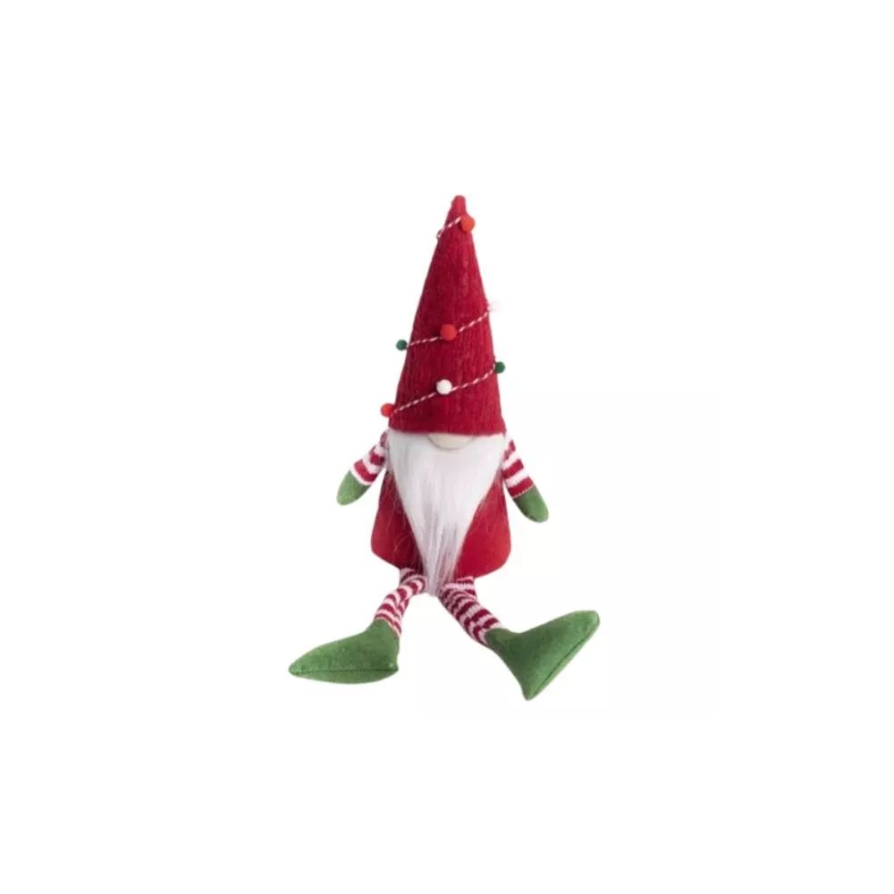 A manó sapkáját piros, fehér és zöld színű golyócskák díszítik, melyek vidám és kedves megjelenést kölcsönöznek neki. Piros-fehér csíkos felsője és kedves arca tökéletes kiegészítője lesz bármely ünnepi díszítésnek.
