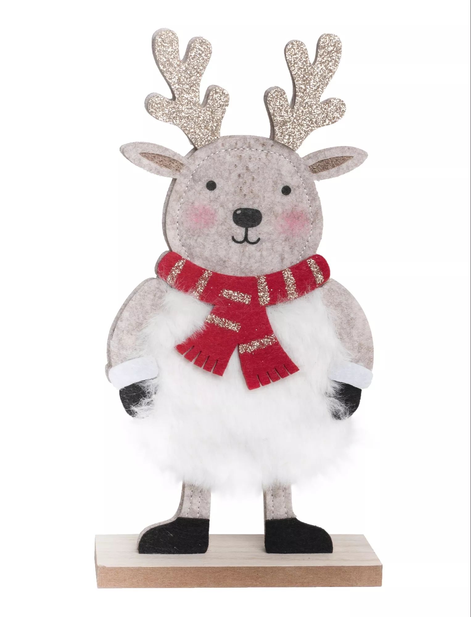Ha szereted az egyedi és különleges karácsonyi díszítéseket, akkor ez a filc rénszarvas a fa talapzaton tökéletes választás számodra. Kombináld más ünnepi díszekkel, hogy még varázslatosabb légkört teremts!