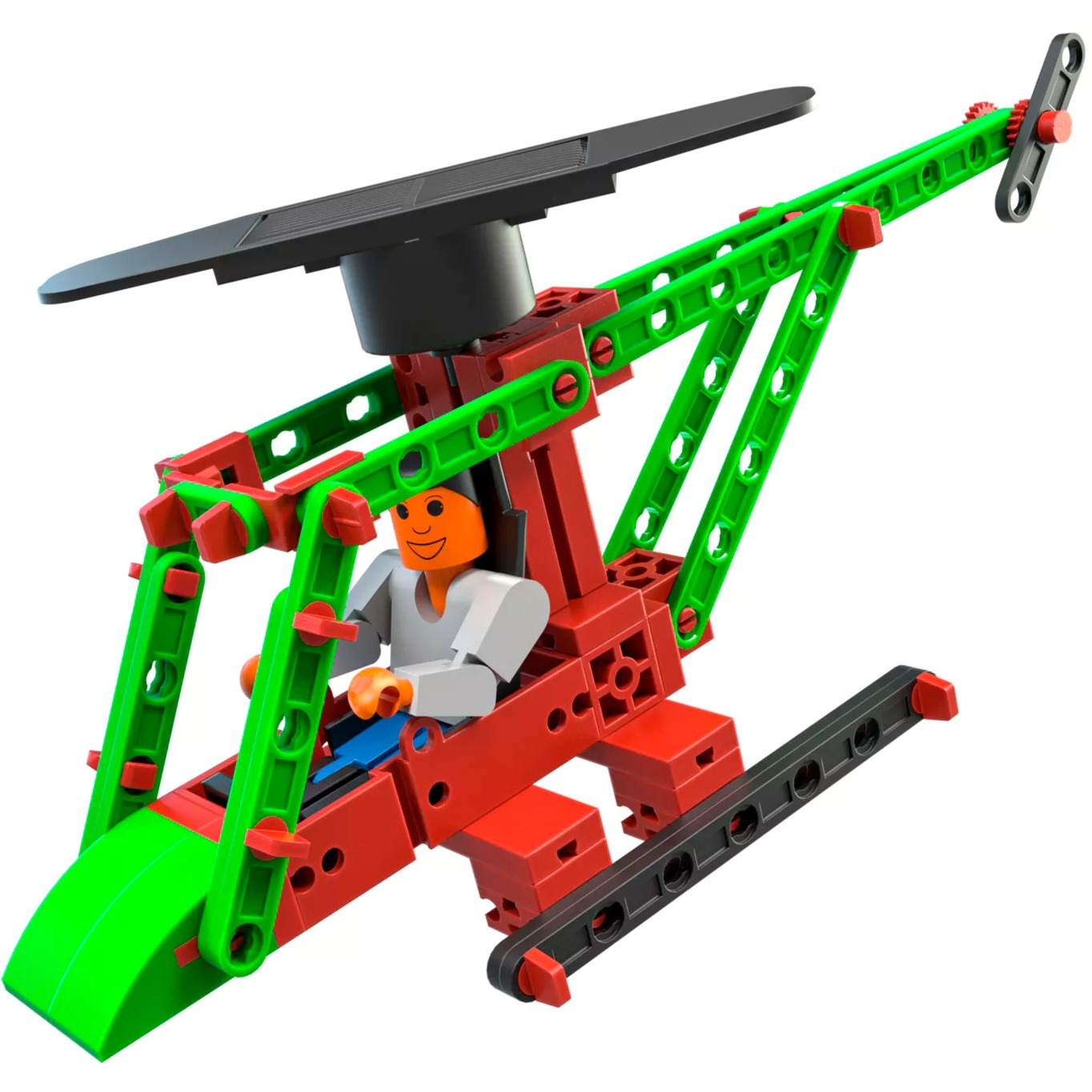 Egy nagyszerű lehetőség gyermekek számára, hogy első lépéseiket megtegyék a megújuló energia világában. Ez a kiváló minőségű építőjáték lehetővé teszi, hogy a kis mérnökök három különböző modellt építsenek a 80 alkotóelemből: egy helikoptert, egy légcsónakot és egy ventilátort, mindezt a napenergia segítségével!