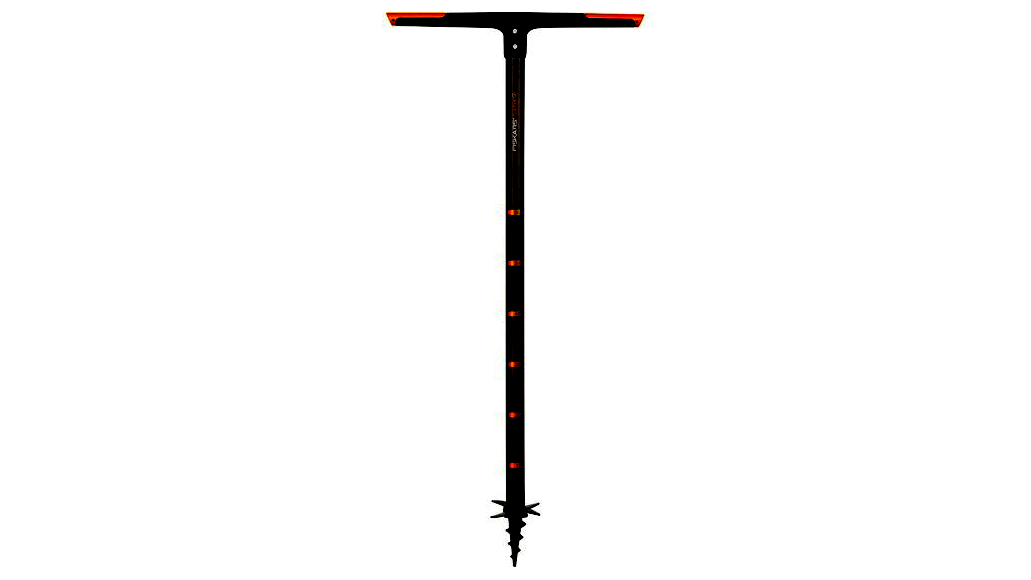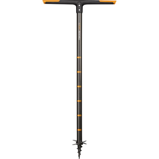 A hagyományos spirálmenetes megoldást a Fiskars a két, egymással optimális szöget bezáró bóracél pengével váltotta fel. Ez a kivitel segíti a fúrást, még az ellenállóbb talajtípusok esetében is. A szerszám nem akad el, mivel a menet mélyebbre nyúlik. A kifúrt föld egyben, egy kis halomban emelhető ki a lyuk kifúrása után.