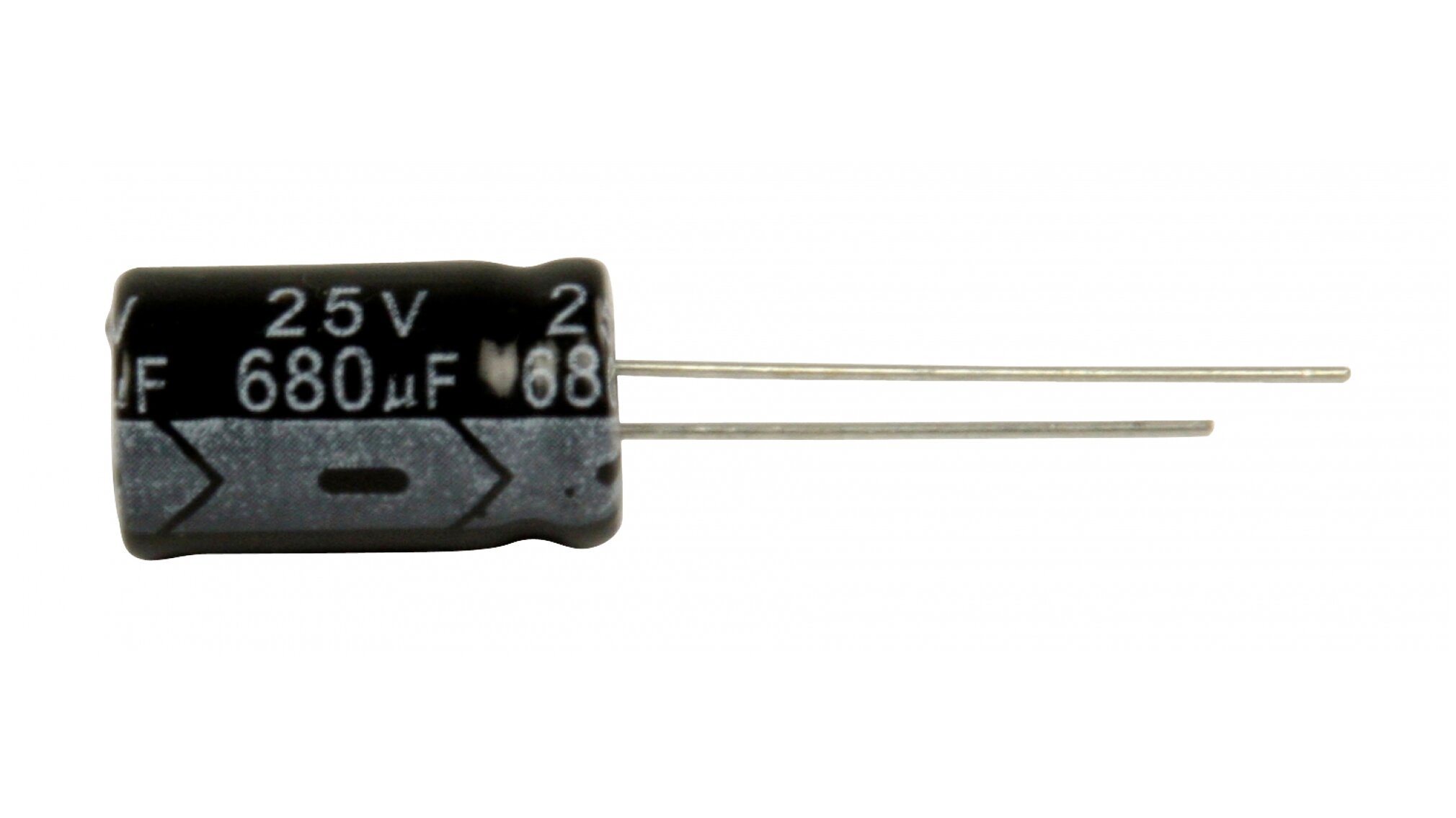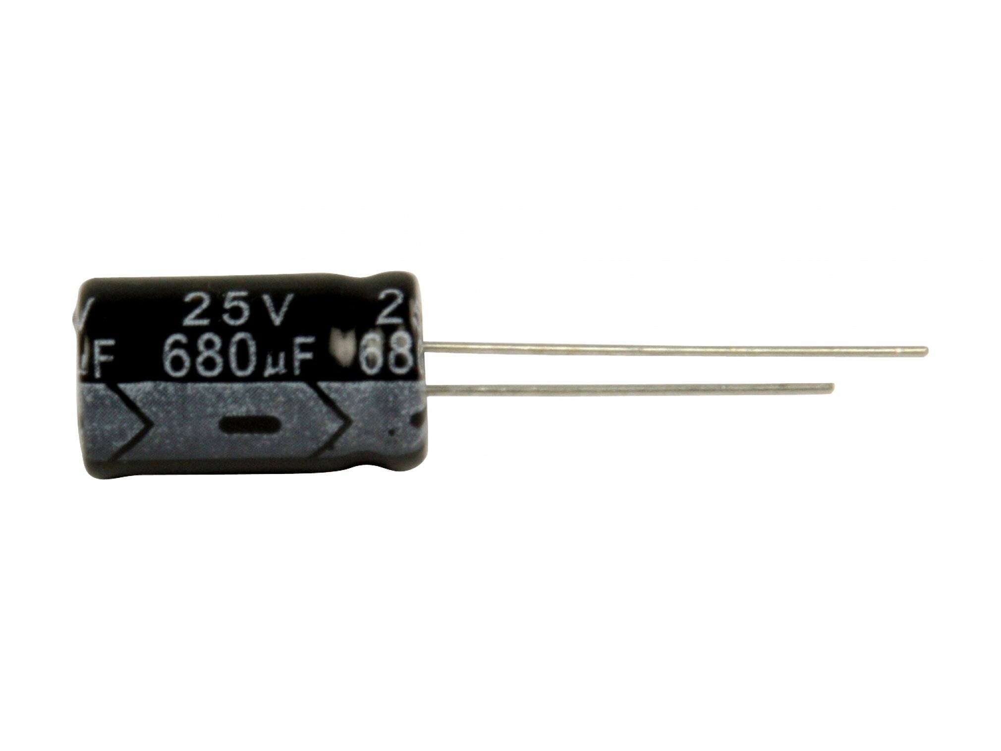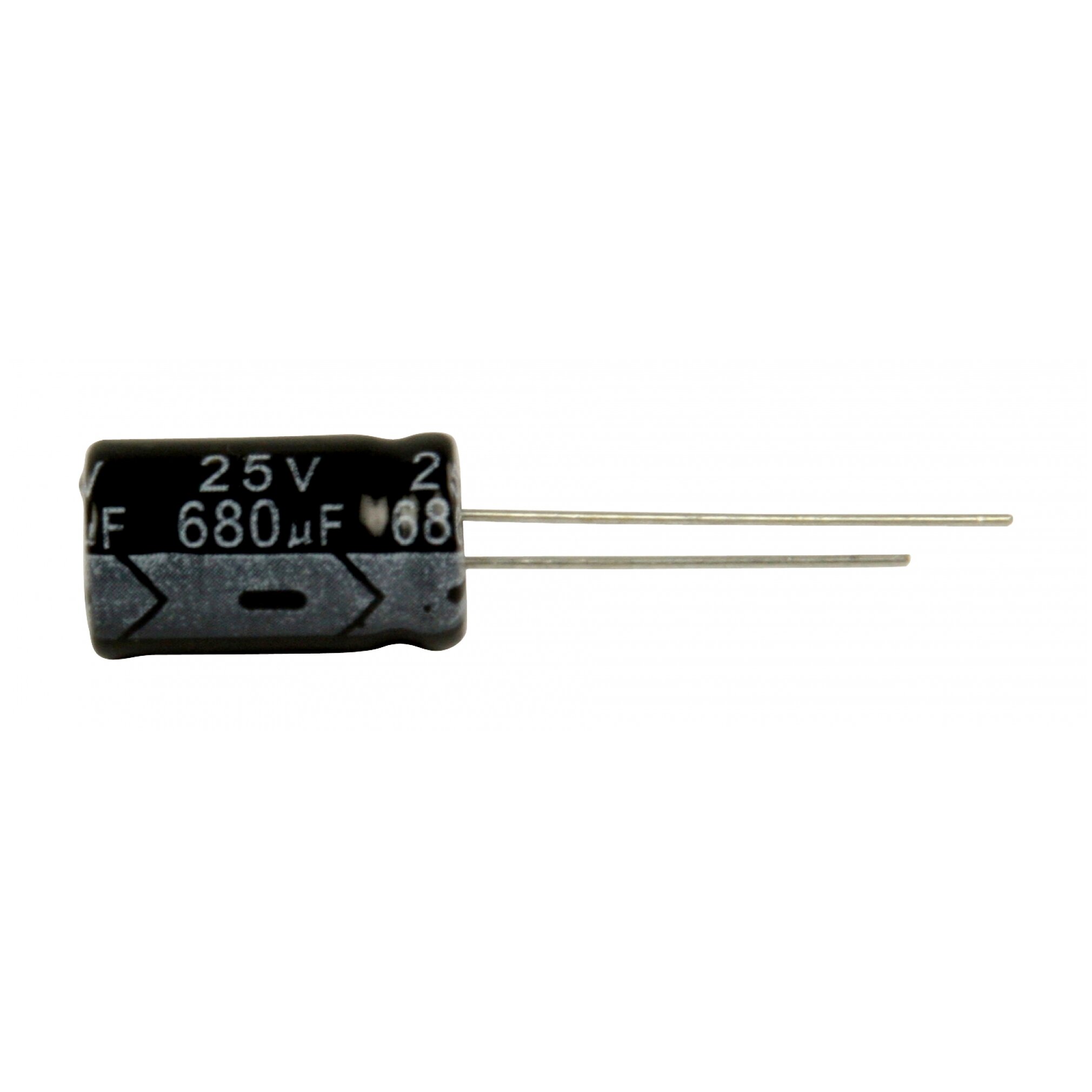 680µF 25V alumínium elektrolit kondenzátor 10 x 20 mm méretben.