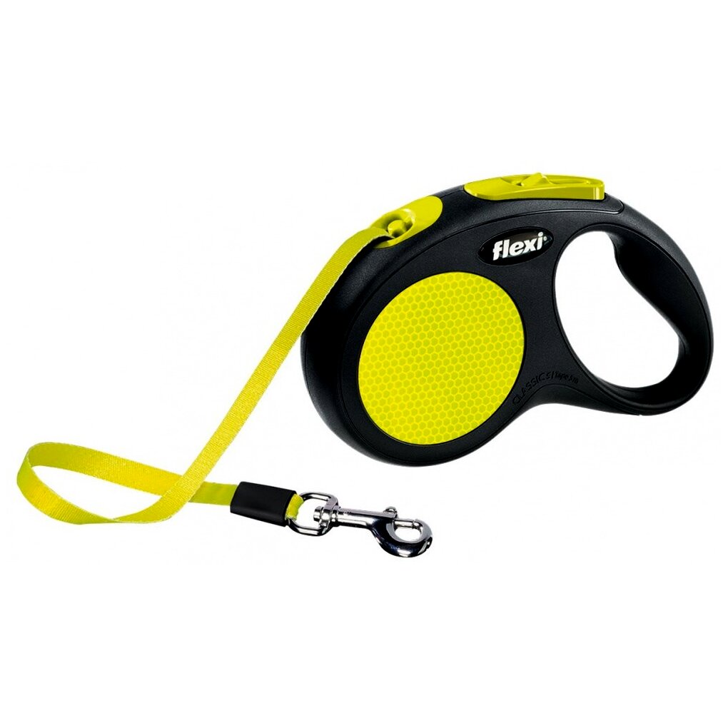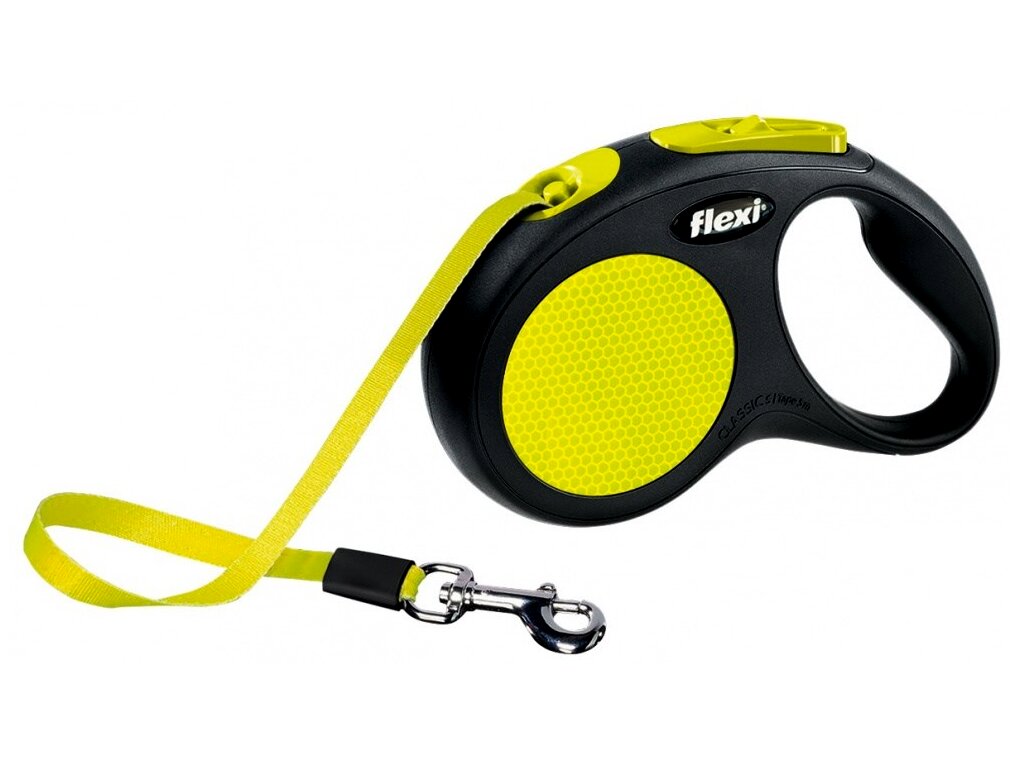 A Flexi New Neon csévélő pórázzal nagy mozgásteret nyújthat kutyájának közös sétáik során. A fényvisszaverőknek és az élénk színeinek köszönhetően nagyobb biztonságot nyújt a sötétben. Automatikusan kieresztődik, majd közelítés esetén újra visszatekercselődik. Ezekkel a pórázokkal maximális mozgásszabadságot ajándékozhat kedvencének sétáik alkalmával, miközben folyamatosan és kényelmesen kezében tarthatja az ellenőrzést. Igény esetén kattintással aktiválhatja a rövid ütemű fékrendszer-funkciót, ami akár rögzíthető is. Markolata állítható, így bármilyen kézméret számára ideális.