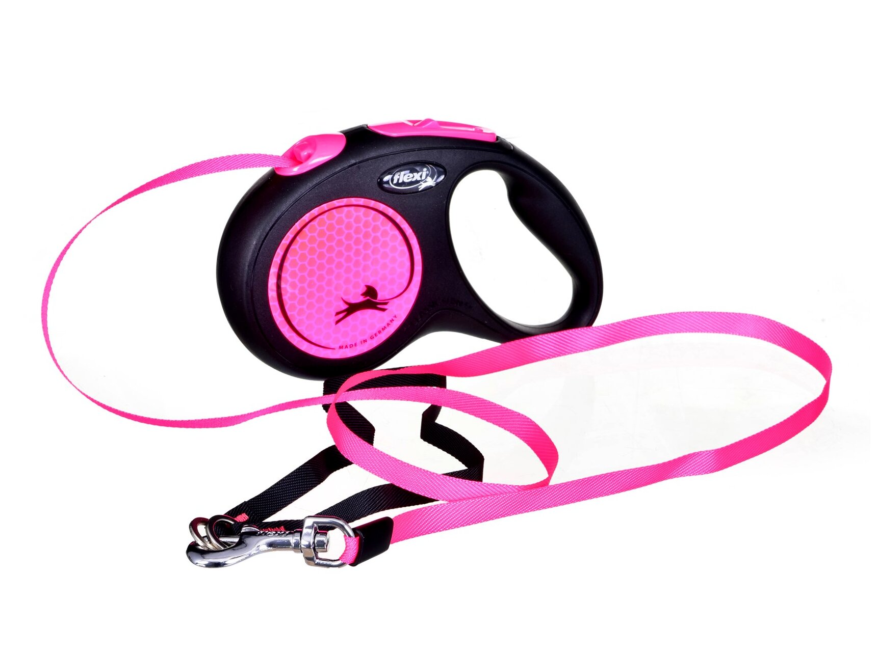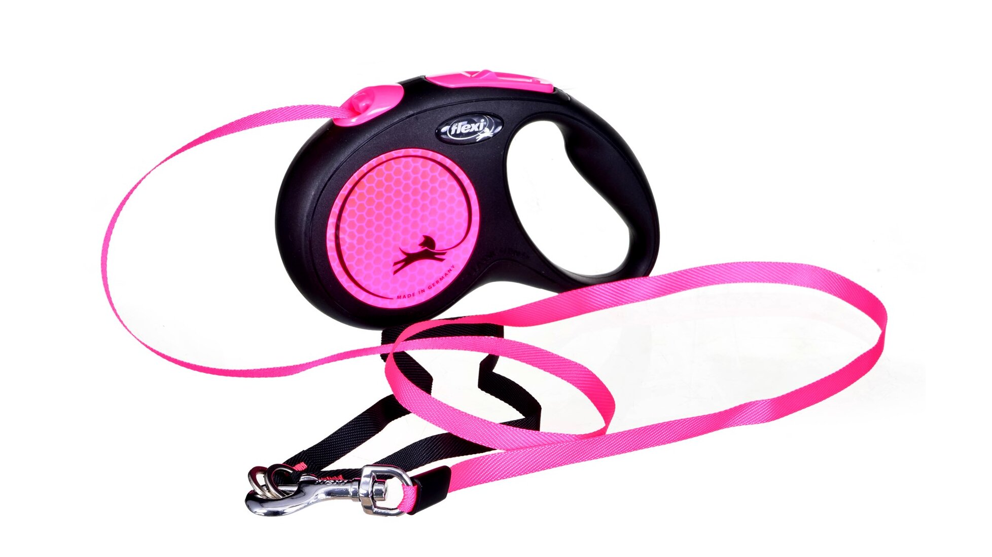 A Flexi New Neon csévélő pórázzal nagy mozgásteret nyújthat kutyájának közös sétáik során. A fényvisszaverőknek és az élénk színeinek köszönhetően nagyobb biztonságot nyújt a sötétben. Automatikusan kieresztődik, majd közelítés esetén újra visszatekercselődik. Ezekkel a pórázokkal maximális mozgásszabadságot ajándékozhat kedvencének sétáik alkalmával, miközben folyamatosan és kényelmesen kezében tarthatja az ellenőrzést. Igény esetén kattintással aktiválhatja a rövid ütemű fékrendszer-funkciót, ami akár rögzíthető is. Markolata állítható, így bármilyen kézméret számára ideális.