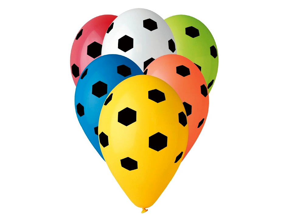Színes, focilabda mintázatú prémium lufik. Mérete: 30 cm. A csomag 5 db lufit tartalmaz.