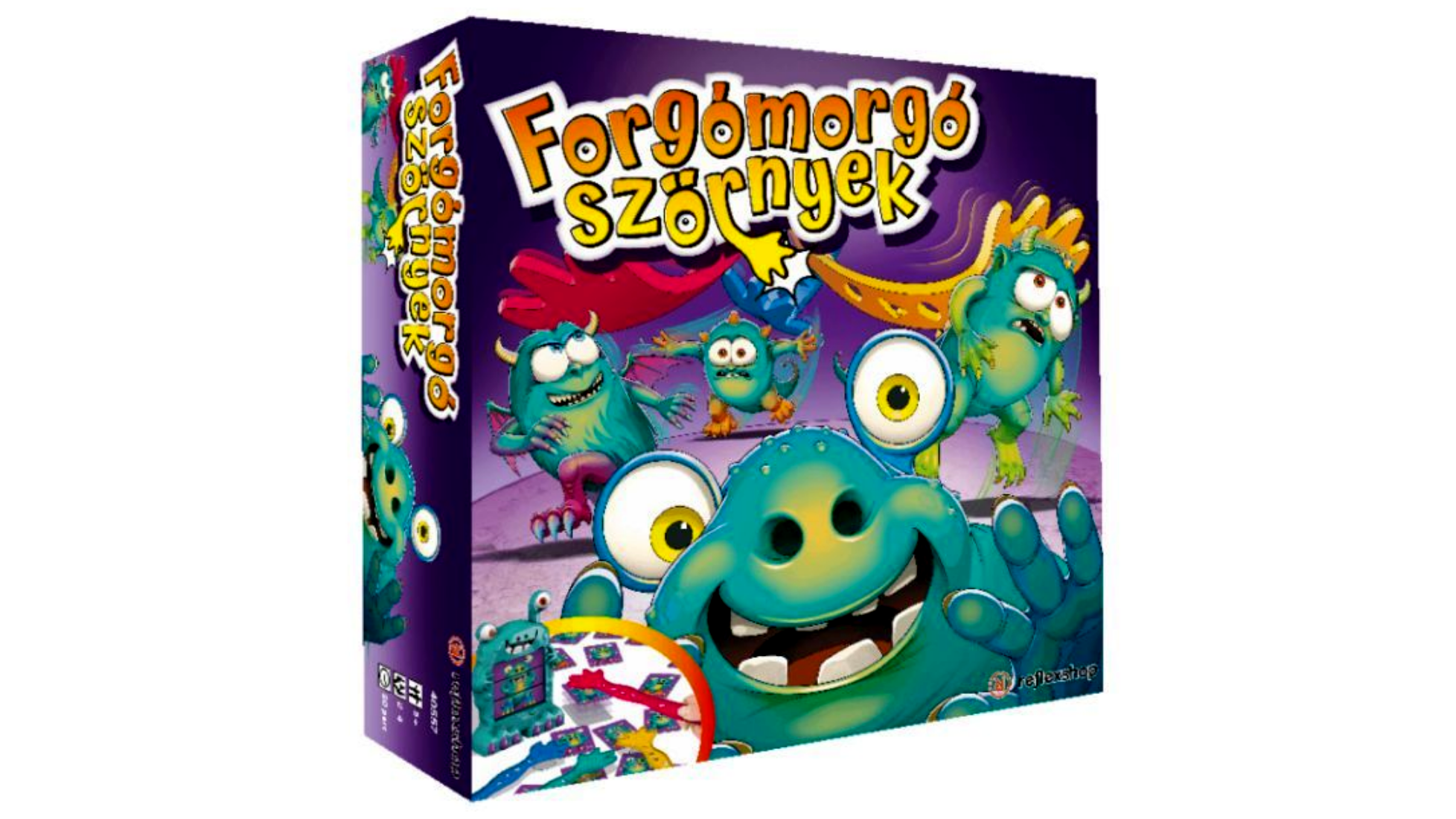 Tartalom: 1 db forgómorgó masina, 27 db szörnykártya, 4 db tapadókorongos szörnytappancs