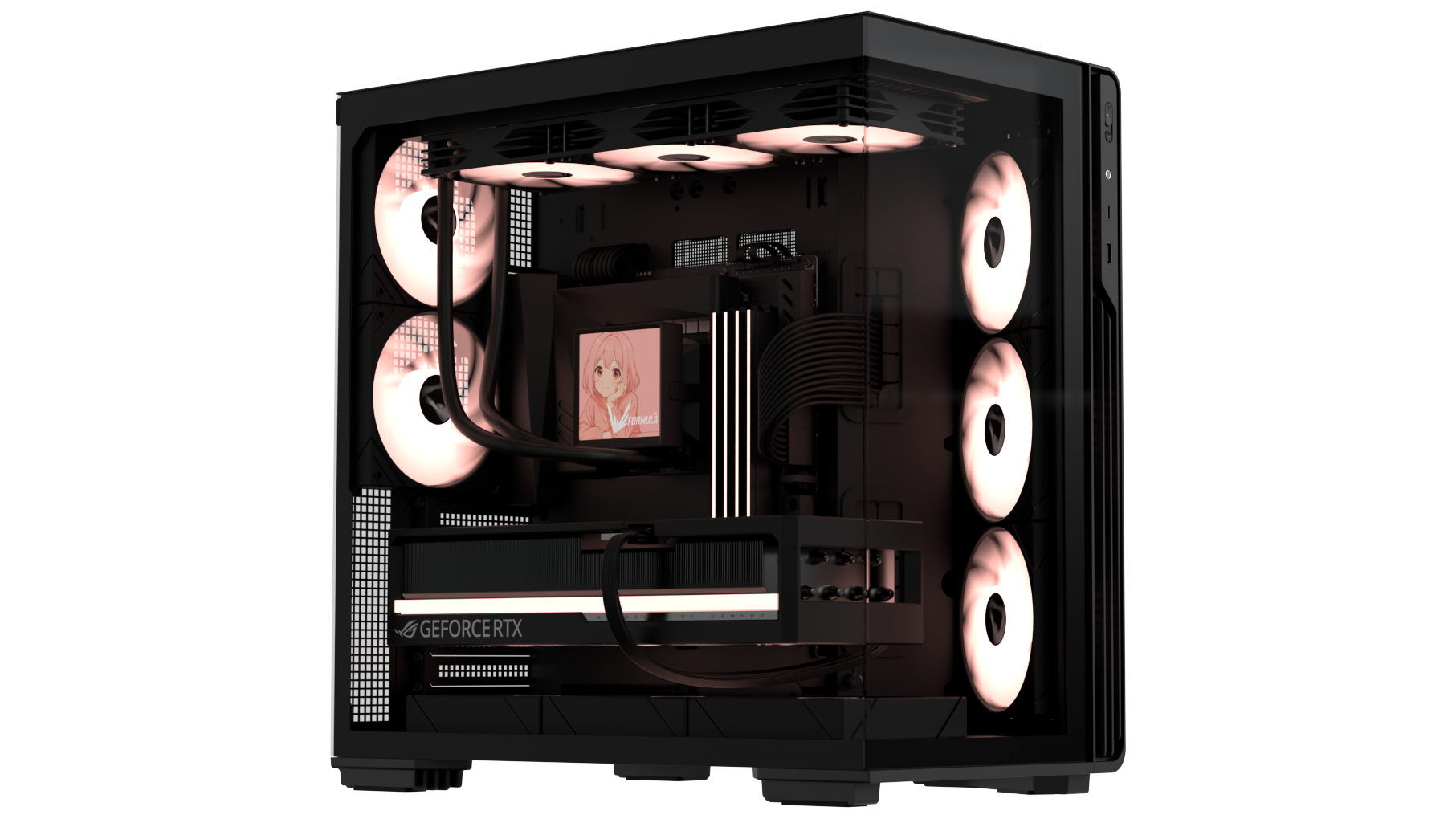 - Jobb oldal: max. 3 × 120 mm ventilátor (ebből 3 × 120 mm ARGB gyárilag beépítve)