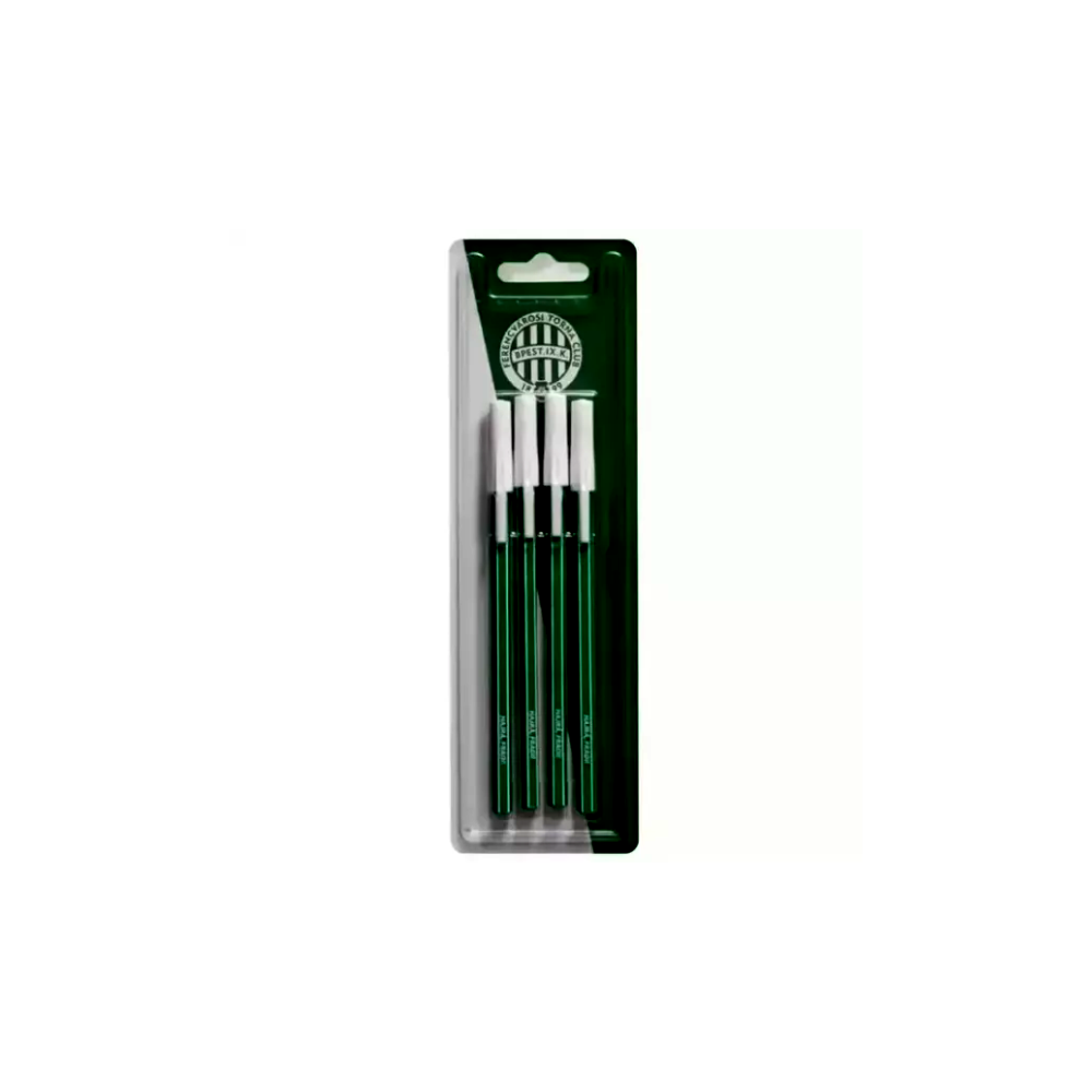 Ha a Ferencvárosi Torna Club híve vagy, ez a golyóstoll készlet biztosan elnyeri a tetszésed! A csomag négy darab magas minőségű golyóstollat tartalmaz, amelyek mindegyike büszkén viseli a híres „Hajrá Fradi!” feliratot. A zöld színű tolltest és a lezárható kupak tökéletes kiegészítővé teszi ezt a készletet, legyen szó iskoláról, irodáról vagy otthoni használatról.
