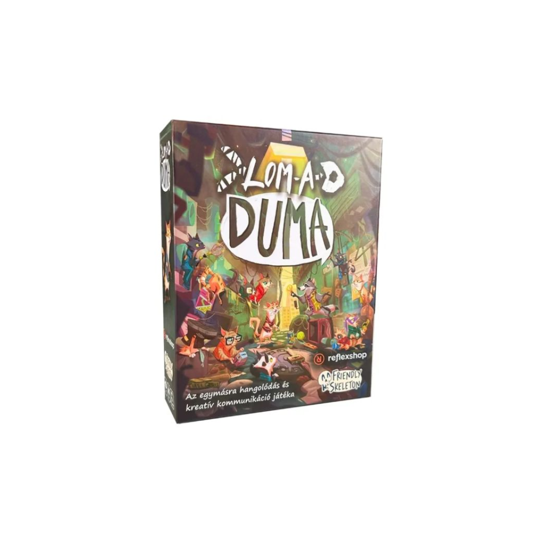 A Lom-a-duma egy kooperatív asszociációs játék, amelyben mosómedvék és macskák próbálnak kommunikálni egymással úgy, hogy különböző lomokat párosítanak össze különböző szókártyákkal. Dolgozzatok össze, és vergődjétek át magatokat az egyre nehezedő fordulókon!