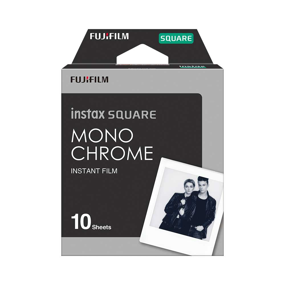 Fekete-fehér, fényes instant film Instax SQUARE formátumot használó fényképezőgépekhez.