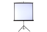 háromlábú hordozható vászon 152x203 cm, matt fehér, fekete acél tokkal, állítható magasság és trapézkép korrekciós kar, körben 3cm fekete keret