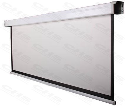 FUNSCREEN Fali Vászon Motor 127 x 203 cm 16:10 Matt fehér felület, Fehér acél tok, 16:10 képarány, Fekete hátoldal, Képaránytól függő fekete kifutó, Tartozék: RF távvezérlő