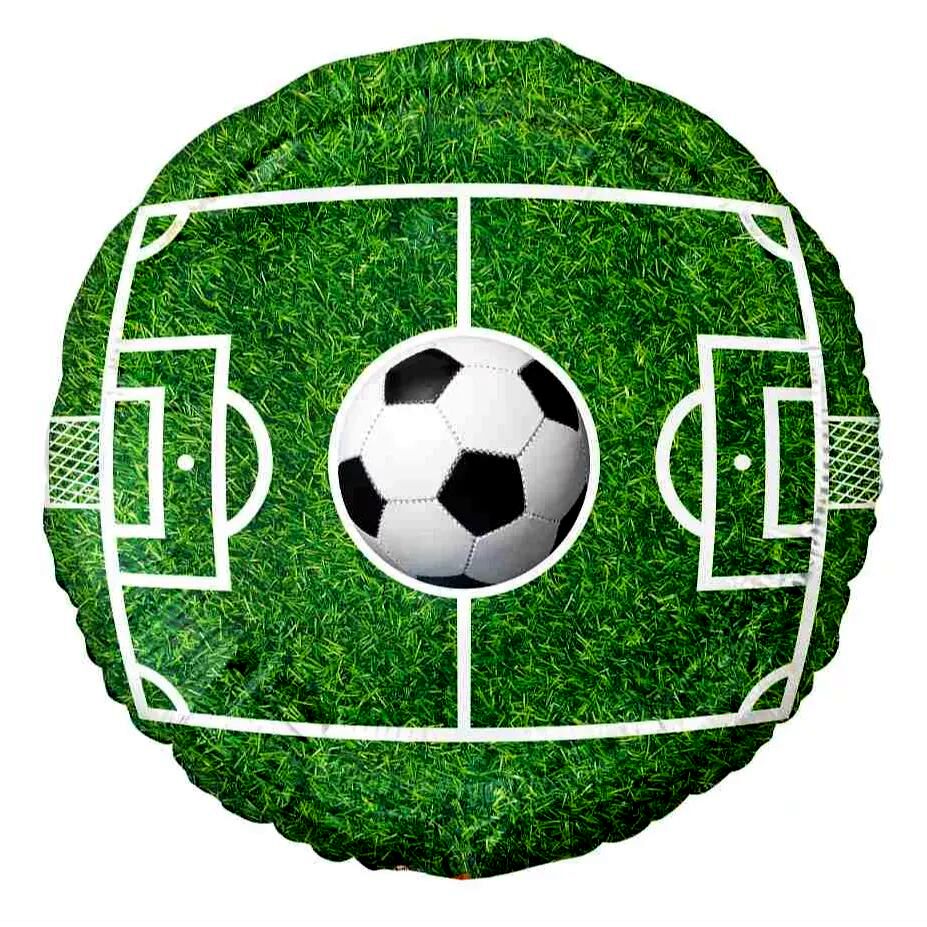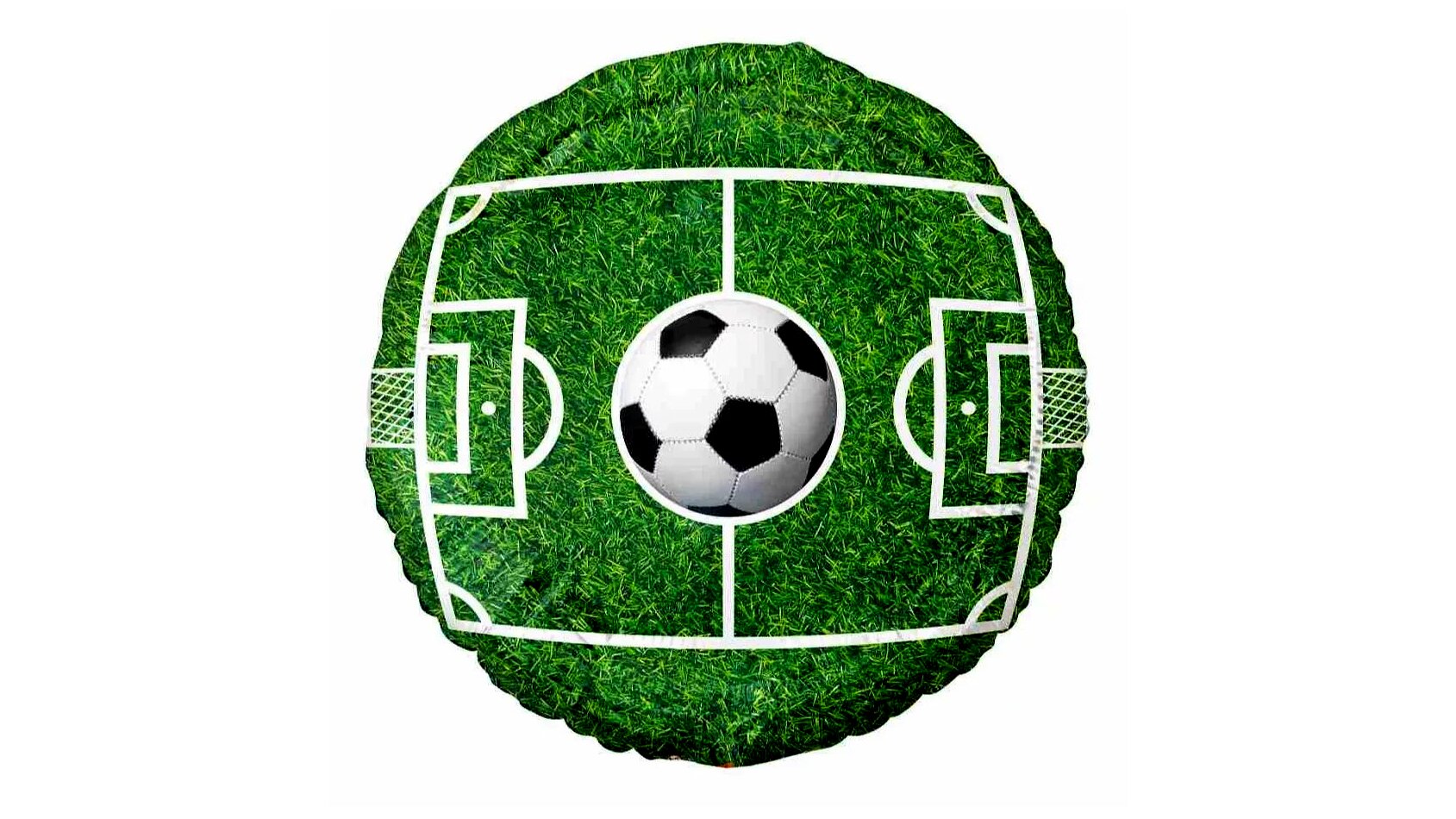 • Focipálya mintázatú, kerek fólia lufi – modern, élénk színekkel, igazi stadionhangulatot idézve