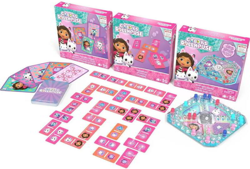 Gabi babaháza: 3 az 1-ben társasjáték csomag kis rajongóknak. A játék egy Ki nevet a végén? Pop up társasjátékot, egy csomag dominót, valamint egy kártyapaklit tartalmaz, amellyel a francia kártya szabályai szerint játszhatnak a gyerekek.
