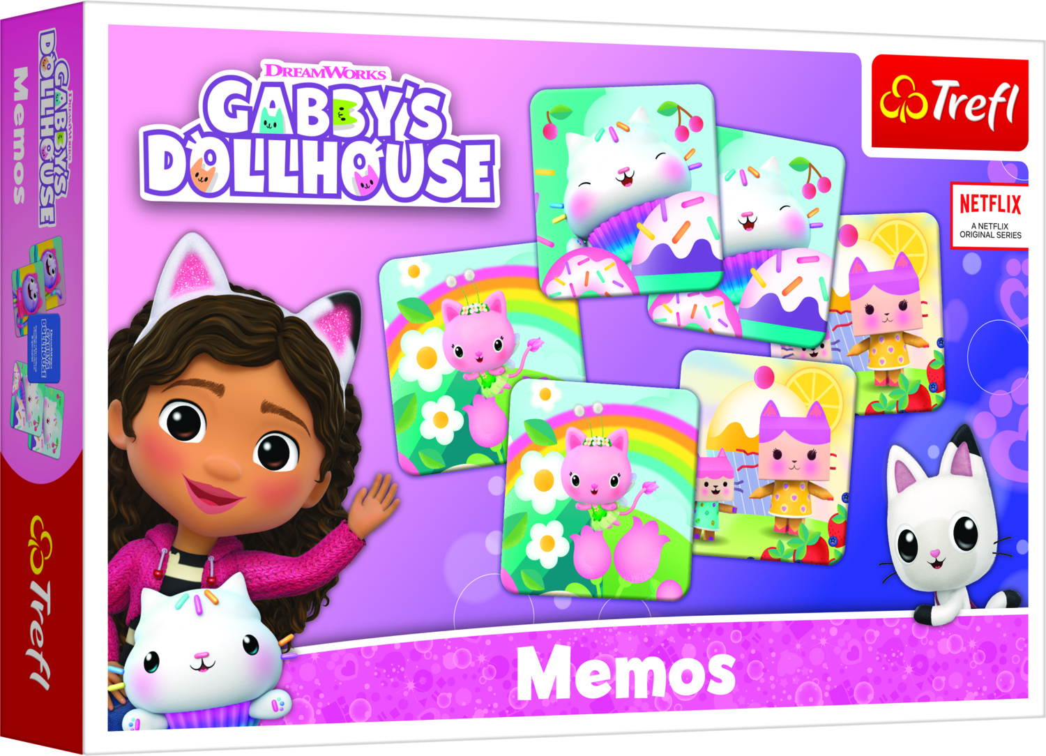 A gyerkőcök egyik kedvenc meséje, a Gabi babaháza szerepel ennek a memóriajátéknak a képkockáin. A játék lehetővé teszi, hogy Gabi babaháza szórakoztató világában kalandozzanak a gyerekek, miközben fejlesztik a memóriakészségüket. Biztosan örömmel találják majd meg a párokat ebben a hagyományos társasjátékban, amit akár egyedül is lehet játszani. A vidám grafika és a kedvelt karakterek garantálják a jó hangulatot minden korosztálynak.