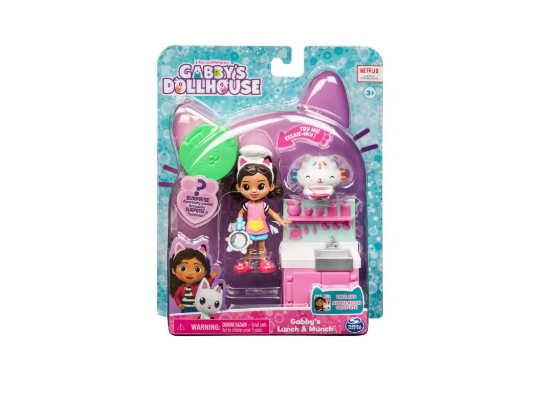 A népszerű Netflix sorozat, a Gabi babaháza imádnivaló karakterei alig várják, hogy ne csak a képernyőn, hanem a gyerekszobában is szórakoztassák a kis rajongókat. A Lunch and Munch, azaz Szakács Gabi játékszettben a kislányok Gabival és Cakey Cat-tel készíthetnek finomabbnál finomabb ebédet, vagy épp uzsonnát. A készlet mindent tartalmaz, amire egy sütős-főzős délutánhoz szükség lehet: egy mosogatóval ellátott konyhapultot, amelynek nyitható az ajtaja, egy kenyérpirítót, valamint egy titkos dobozkát, ami egy meglepetés kiegészítőt tartogat.