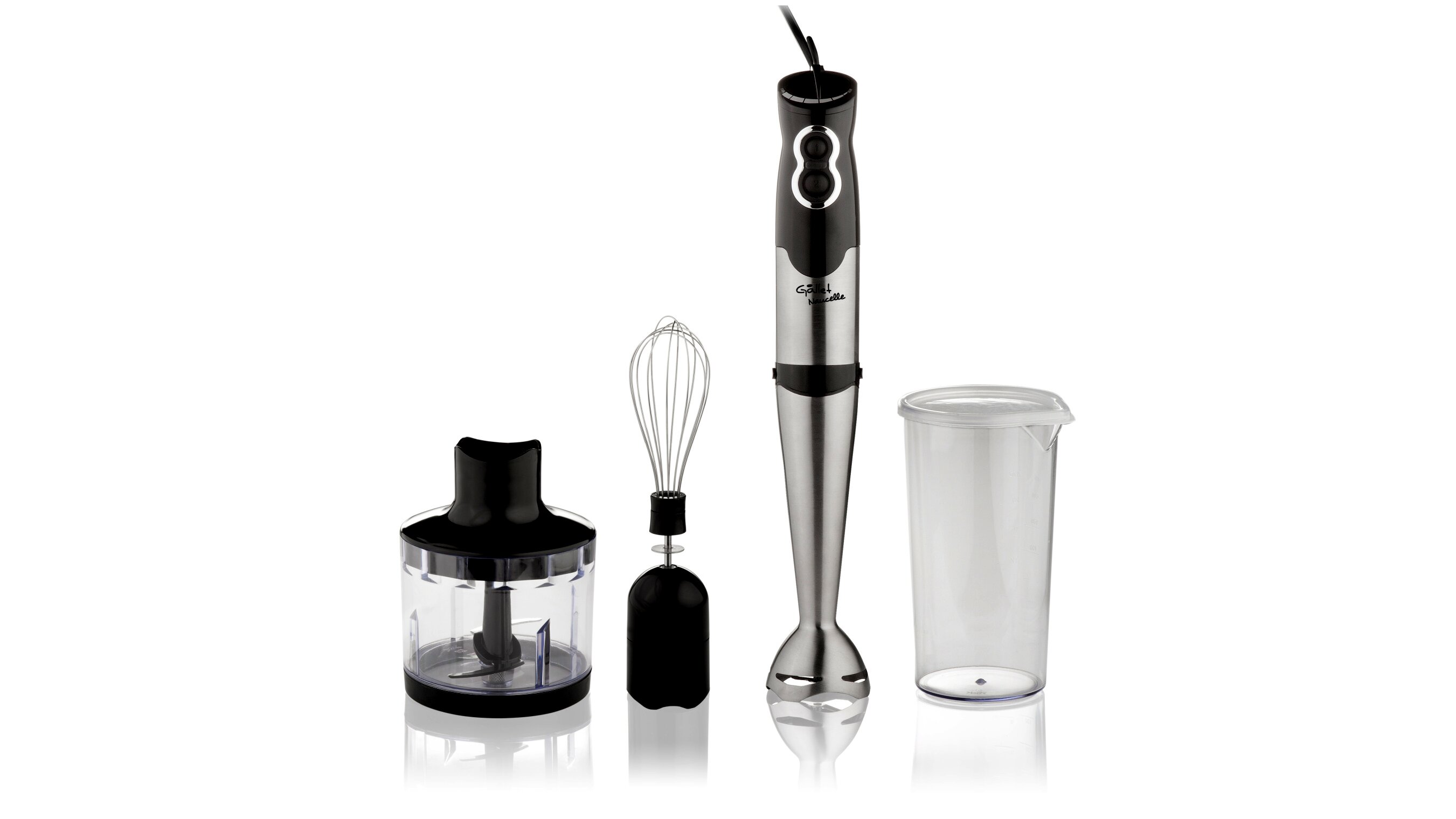 | Egyéb jellemzők | Rozsdamentes acél pengék Egyszerű karbantartás Akasztógyűrű Habverő |