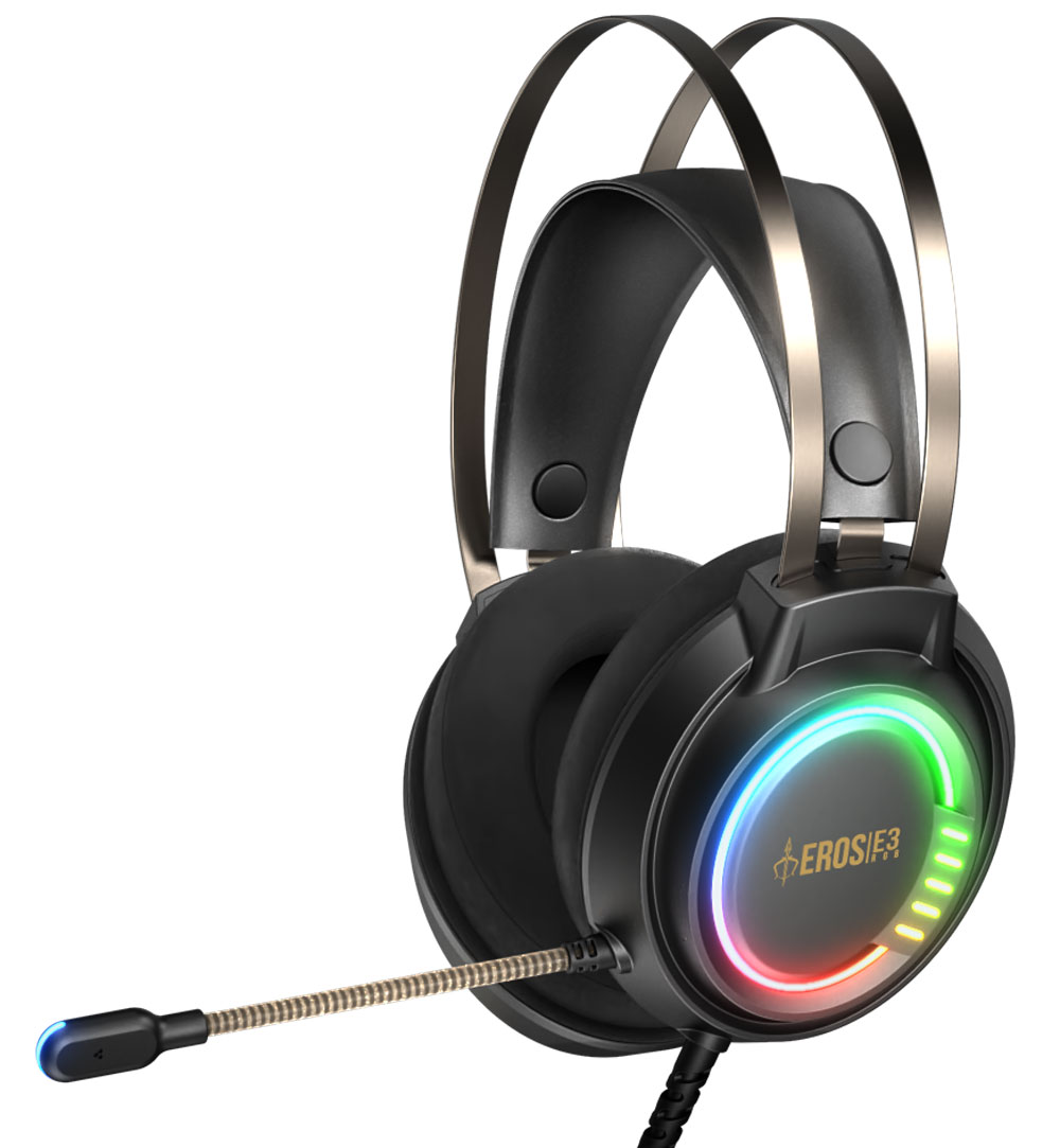Az EROS E3 Gaming Headset saját RGB effektussal van ellátva a tökéletesen megtervezett fülpárnák körül.
