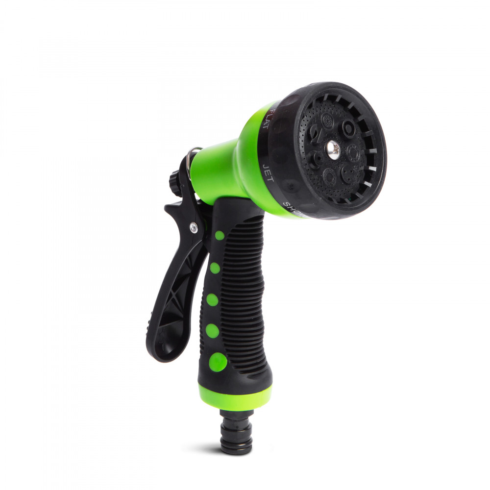 Műanyag locsoló pisztoly, amely 7 db locsolási funkcióval rendelkezik, így garantáltan megtalálja az Önnek szükséges vízsugarat, legyen szó porlasztásról vagy vékony vízsugárról. A gyorscsatlakozó kuplung segítségével könnyen hordozható egyik öntözőtömlő végéről a másikra. A kitámasztókarnak köszönhetően nem szükséges a locsolás teljes ideje alatt nyomva tartania a ravaszt.