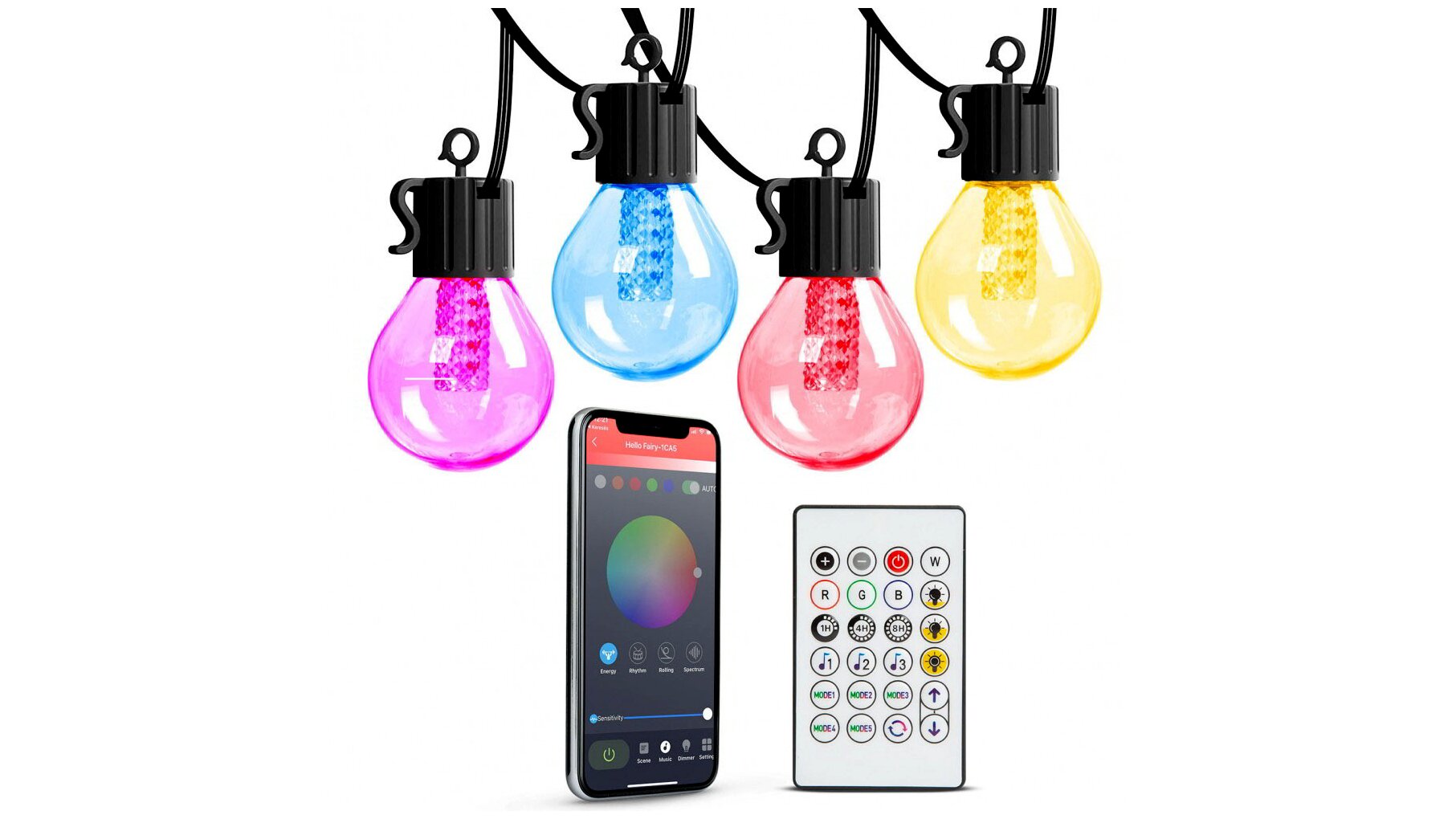Egy hangulatos teraszra, kertre vágyik? Dobja fel otthonát energiahatékony fényfüzérrel! A hagyományos villanykörtére hasonlító fényfüzér, amely jól mutat bármely kerthelyiségben. A színes LED-ek beállítása a tartozék távirányítóval vagy okostelefonra elérhető, ingyenes alkalmazás segítségével lehetséges. Többféle előre beállított hangulat és fényprogram közül választhat, akár minden LED más színnel is képes világítani. Kiváló választás egy nyári, meghitt, kerti vacsorához, de ideális választás lehet nyüzsgő kertipartikhoz is.