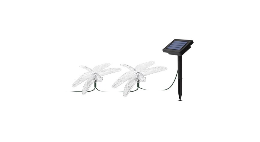 10 db akril szitakötőből álló napelemes lámpa szett, amely varázslatos hangulatot teremt bármely kertben. Az átlátszó kis rovarok piros, sárga, kék, zöld LED-ek világítják meg, ezzel teremtve kellemes hangulatot hazaérkezéskor. A nap folyamán a szolár panel a napfényt elektromos árammá alakítja és feltölti a beépített akkumulátort. Szürkületkor a termék automatikusan bekapcsol, napfelkeltekor pedig ki. Ideális lehet bármilyen kertben, bokrok, fák, virágoskertek egyedi és különleges dekorálására.