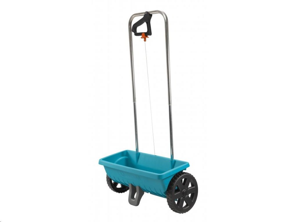 A GARDENA szórókocsi L kiválóan alkalmas műtrágya és útszóró só kényelmes kiszórására közepes nagyságú területeken. Könnyedén működtethető a markolaton található nyit/zár funkció, és ugyanitt állítható be a kiszórandó mennyiség is. A szórókocsi fedelén található zárószalag olyan szorosan zár, hogy sem álló helyzetben, sem töltés közben sem használat után nem szóródik ki belőle semmi. A GARDENA Szórókocsi L különleges szóróhengere az anyagot egyenletesen és pontosan szórja ki, ráadásul csak ott, ahol kell. A szórókocsi könnyedén, vízzel tisztítható..