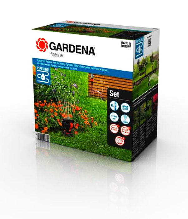 A GARDENA Starter Set csővezeték oszcilláló locsolóval új és hatékony módját teremti meg a kert öntözésének. A külön kapható szerelőcsöveken és a csatlakozótömlőn kívül a készlet tartalmaz mindent, amire szüksége van ahhoz, hogy a kertben lévő növényeit mostantól kényelmesen ellássa vízzel. A szanaszét heverő és feltekercselt tömlők napjainak mostantól vége. A csatlakozó pont a vízcsap és a földben lévő cső közötti összeköttetésként szolgál. A mellékelt T-csukló segítségével akár további irányba is elágazhat a csőből. A két vízállomás praktikus csapként szolgál, ahol nemcsak a tömlőt csatlakoztathatja, hanem az oszcilláló locsolót is használhatja. A vízvételezés olyan egyszerű, mintha csak egy csapot nyitna meg a háztartásban. Amint csatlakoztat egy tömlőt vagy a locsolót a Vízállomáshoz, a kapcsolat létrejön. Ha megszakítja a csatlakozást, a vízellátást a beépített elzárószelep azonnal elzárja. Az oszcilláló locsolóval rugalmasan, egyenletesen és pontosan, pocsolyák nélkül öntözheti a 9 és 216 m² közötti területeket. Az esőztetőfej kézzel 360°-ban elforgatható. A csatlakozási pont és a locsolóállomások mindegyike szennyeződésszűrővel, az esőztető pedig szűrővel van felszerelve, amely a folyó víz alatt történő egyszerű tisztítás érdekében kivehető. A kiváló minőségű anyagok használatának köszönhetően minden alkatrész nagyon tartós és UV-álló. A leeresztő szelep beépítésével a rendszert a fagykároktól is megvédi. A startkészlet korlátlanul bővíthető a Pipeline alkatrészekkel. A GARDENA Startkészlet Pipeline oszcilláló esőztetővel Európában készül. Öntözze, ahol szükség van rá. A vízhez való könnyű hozzáférés: föld alatti csővezetékek.