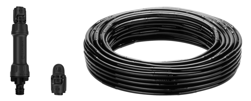 A készlet ideális növénysorok, például sövények, bokrok és cserjék víztakarékos csepegtető öntözésére 50 m-ig.