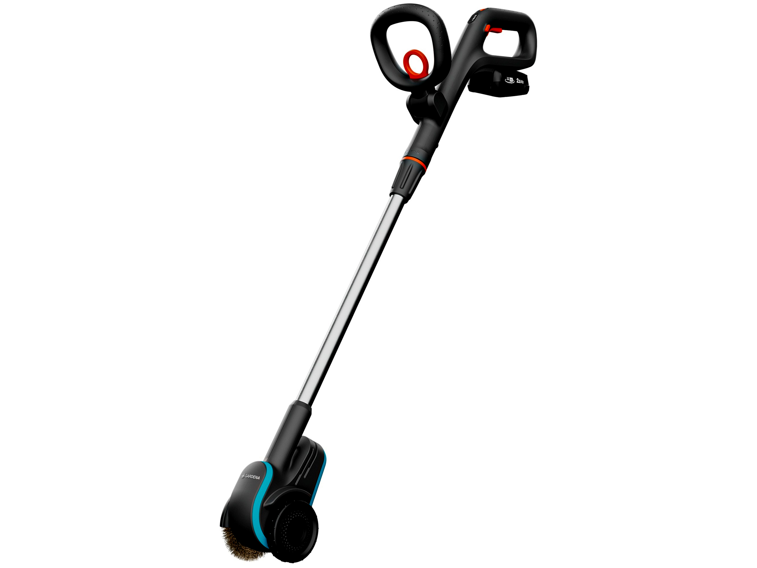 Gardena EasyWeed 1800/18V P4A 14820-20 akkumulátoros fugatisztító kefe a legjobb eszköz a kültéri padlók fűtől, mohától való tisztítására.