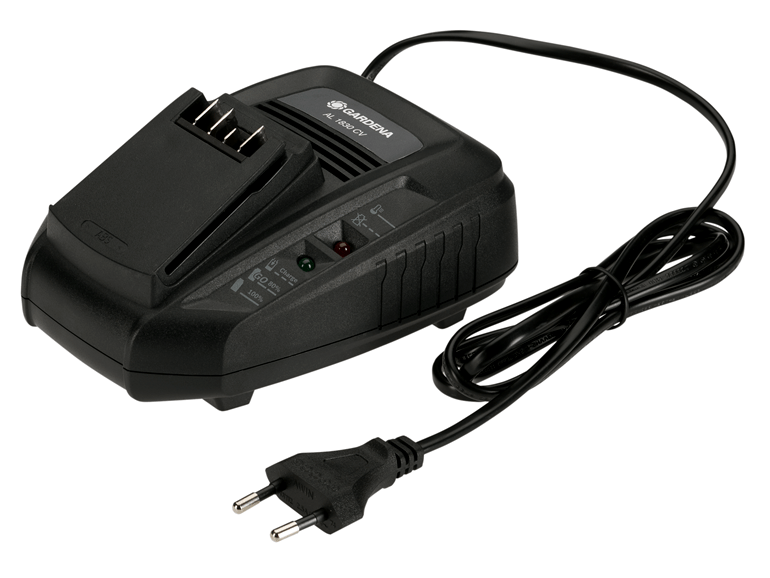 A GARDENA AL 1810 CV akkumulátor-gyorstöltője az összes POWER FOR ALL rendszerű akkumulátor feltöltésére alkalmas. A 2,5 Ah-s akkumulátorokat 60 perc alatt tölti fel teljesen.