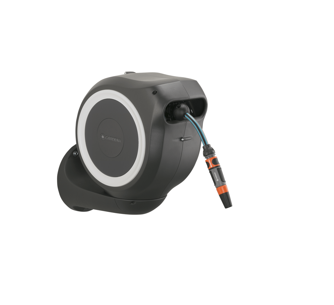 A falra szerelt tömlődoboznak köszönhetően mindig kéznél van a kerti tömlő. A fúvókák, a permetezők és a kefék könnyen felakaszthatók és a fali konzolon tárolhatók.