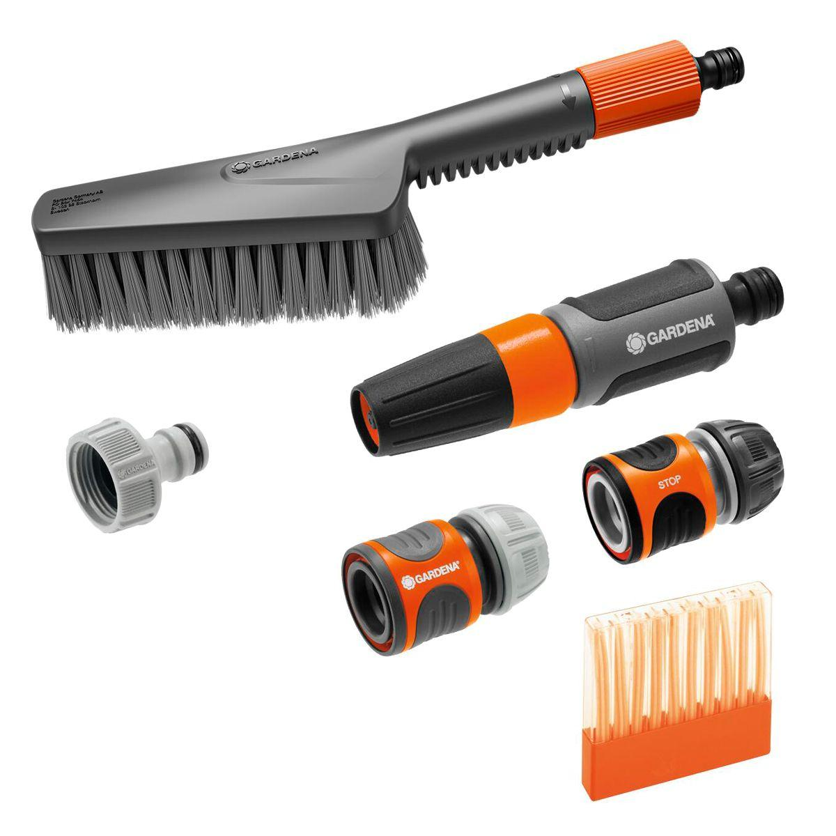 A Gardena Cleansystem 18862-20 Soft Base Set egy átfogó tartozékkészlet, amely tartalmazza a puha kefét 18840 a lándzsát, a csatlakozókat, a csapadaptert és a 10 samponrudat, amelyek ideálisak az öntözéshez, tisztításhoz és az érzékeny felületek szennyeződéseinek eltávolításához.