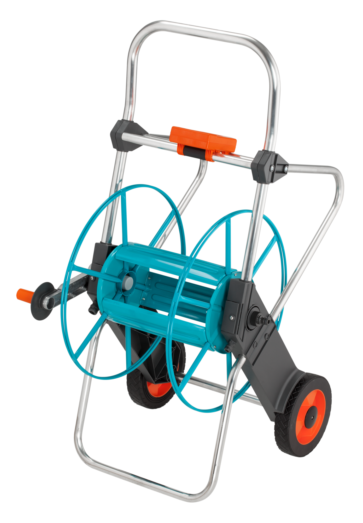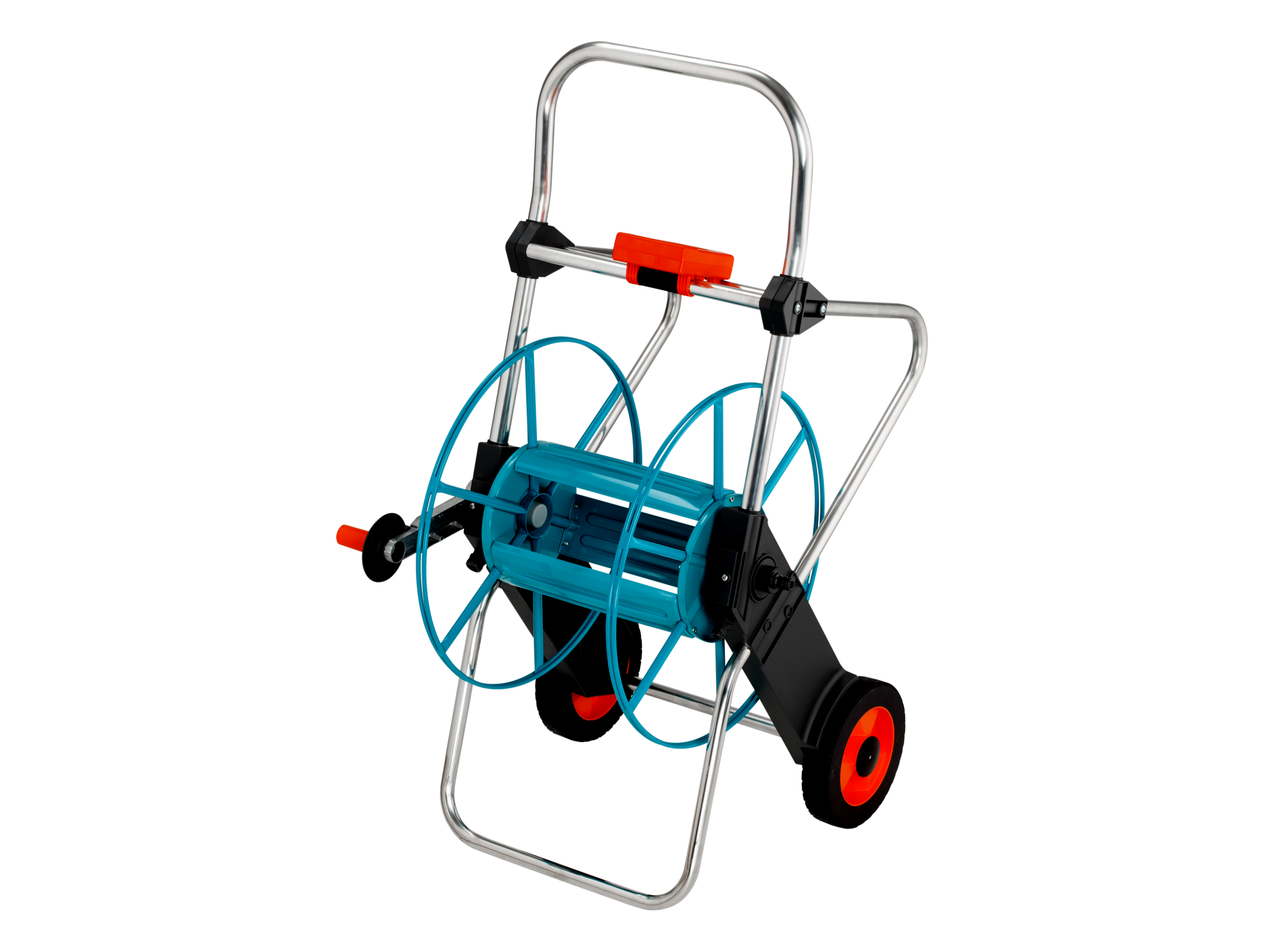 A szilárd kivitelű fém tömlő kocsi különösen alkalmas hosszú tömlőkhöz.