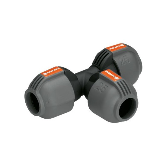 A GARDENA Sprinklersystem részét képező GARDENA 25 mm-es T-elemmel megbízhatóan elágaztatható a vezetékcső.