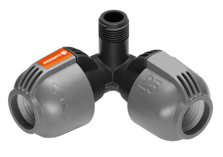 A GARDENA Sprinklersystem részét képező GARDENA 25 mm x 1/2" külső menetes sarokelem S 80 süllyesztett esőztető (cikkszám: 1569-26), illetve T 100 vagy T 200 turbinás esőztető (cikkszám: 8201-29 és 8203-29) csatlakoztatására szolgál sarokpontokban. A szabadalmaztatott "Klikk és Kész" gyorscsatlakozási technológiának köszönhetően az össze- és szétszerelés egyszerűen, szerszám nélkül történik - csupán a csavaros csatlakozást kell 140°-kal elforgatni. A sarokelem a biztonságos, szivárgásmentes működés érdekében öntömítő menetcsatlakozással rendelkezik.