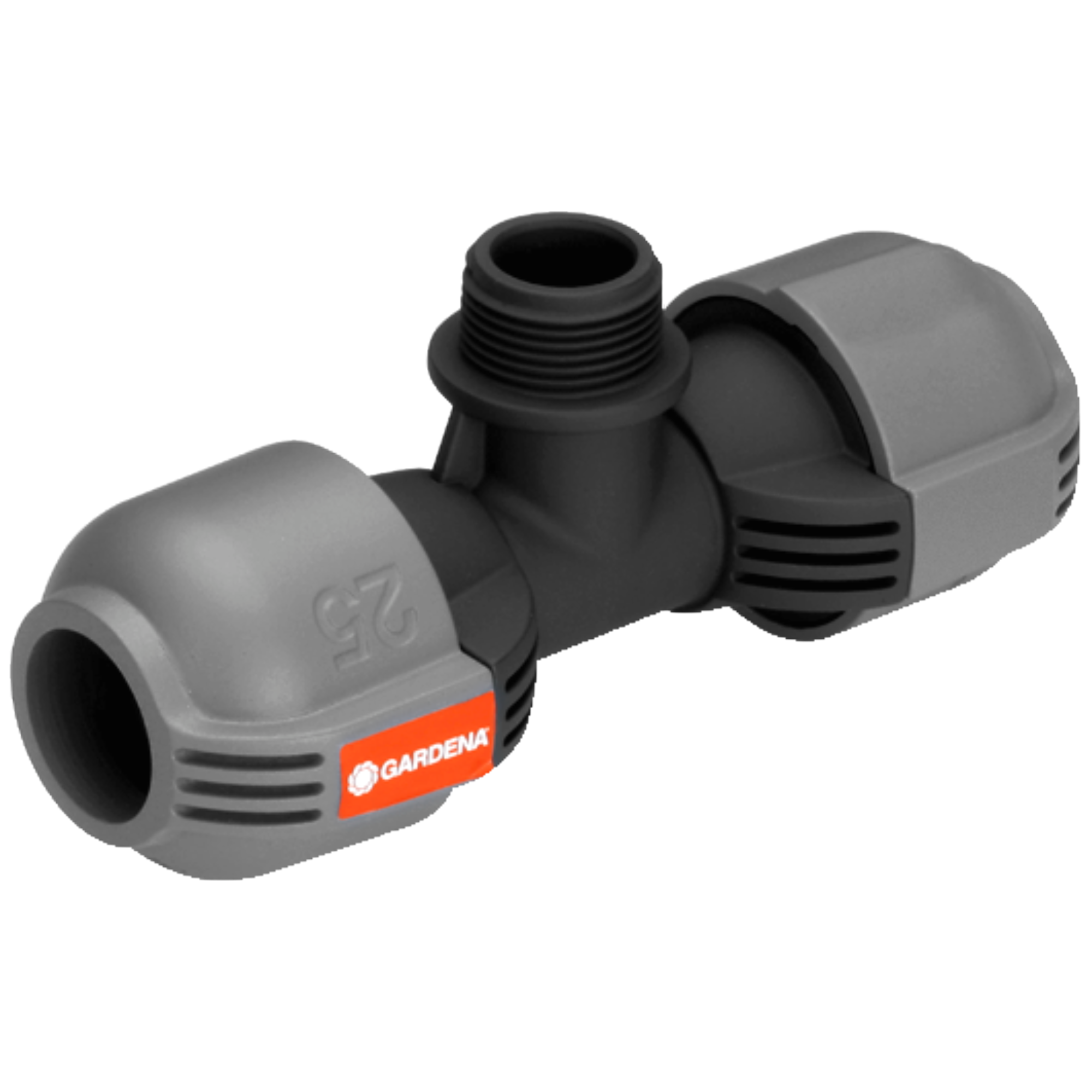 A GARDENA Sprinklersystem részét képező GARDENA 25 mm x 3/4" külső menetes T-elemmel T 380 turbinás esőztető (cikkszám: 8205-29) vagy OS 140 süllyesztett négyszögesőztető (cikkszám: 8220) csatlakoztatható a csővezetékhez. A szabadalmaztatott "Klikk és Kész" gyorscsatlakozási technológiának köszönhetően az össze- és szétszerelés egyszerűen, szerszám nélkül történik - csupán a csavaros csatlakozást kell 140°-kal elforgatni. A T-elem a biztonságos, szivárgásmentes működés érdekében öntömítő menetcsatlakozással rendelkezik.