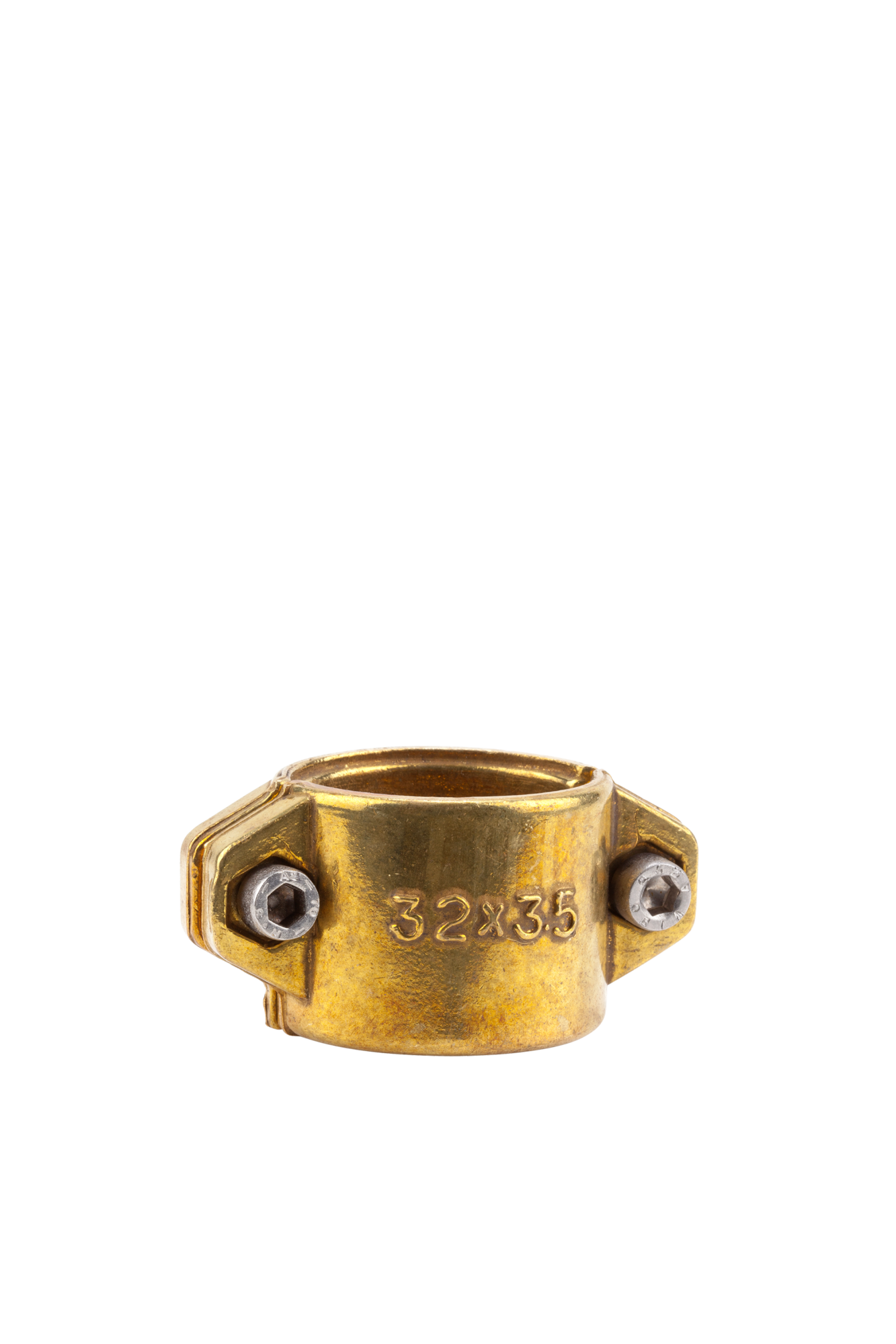 A préselt sárgarézből készült szorítóhüvelyt a szívó- vagy nagynyomású tömlők biztonságos rögzítésére használják. Horganyzott hatlapú csavarokkal és anyákkal van felszerelve. 32 mm-es (1 1/4 ") tömlőkhöz illeszkedik.