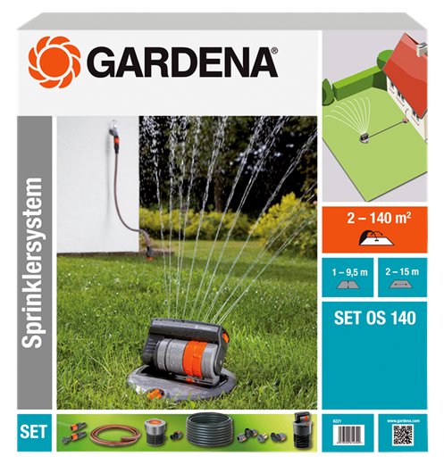 A csatlakozásra kész komplett készlet lehetővé teszi a kompakt öntözőrendszer könnyű beszerelését a négyzet alakú gyepterületeken akár 140 m²-ig.