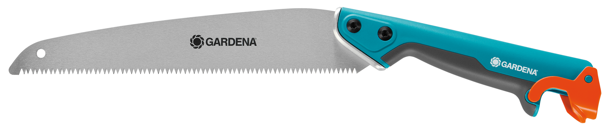 A 325 mm-es fűrészlappal ellátott GARDENA combisystem kerti fűrész rugalmasan használható a különböző jellegű munkákhoz. A könnyen elérhető ágak fűrészeléséhez használja a kerti fűrészt „normál” kézifűrészként. A fűrész nyele jól fekszik a kézben, mert kényelmes, lágy műanyag elemekkel ellátott, ergonómikus kialakítású. Magasabban fekvő ágak esetén, akár 5 méteres magasságig egyszerűen hosszabbítsa meg a nyelét, használja a combisystem teleszkóprudat. Praktikus: egyszerűen rögzítse a combisystem nyelet a fűrészhez. A biztosító zár garantálja, hogy a kapcsolat stabil marad. A biztonságos vágás érdekében impulzus-edzett foghegyekkel és duplacsiszolattal rendelkezik. A combisystem kerti fűrész 300 PP korrózió ellen ideális védelmet nyújtó speciális bevonattal készül. A nyél visszahajló kialakítása megakadályozza, hogy lecsússzon a keze még húzó mozdulatnál is. A szerszám akasztólyukkal és biztonságos tárolást lehetővé tevő élvédővel van ellátva. Így a fűrész mindig biztonságosan tárolható.