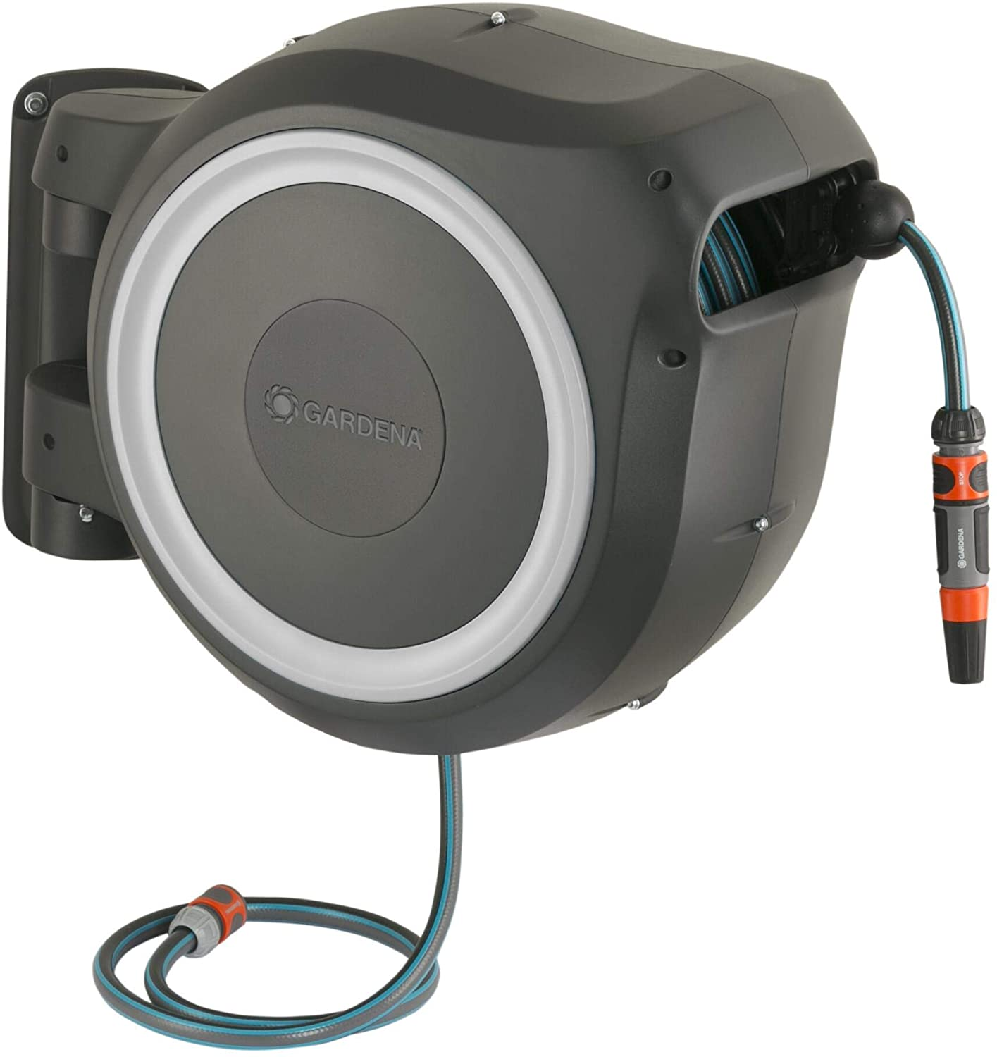 A falra szerelt tömlődoboznak köszönhetően mindig kéznél van a kerti tömlő. A fúvókák, a permetezők és a kefék könnyen felakaszthatók és a fali konzolon tárolhatók.